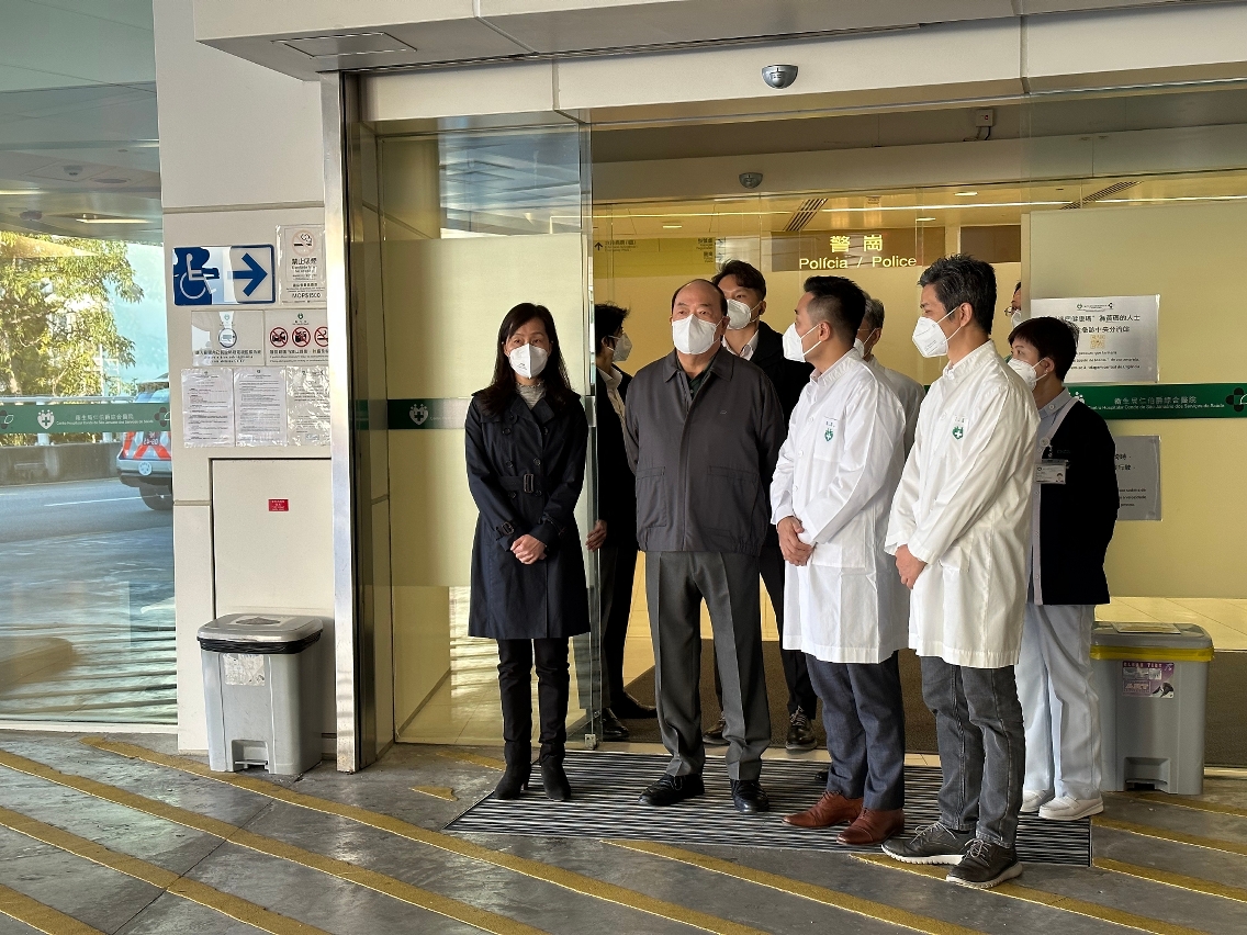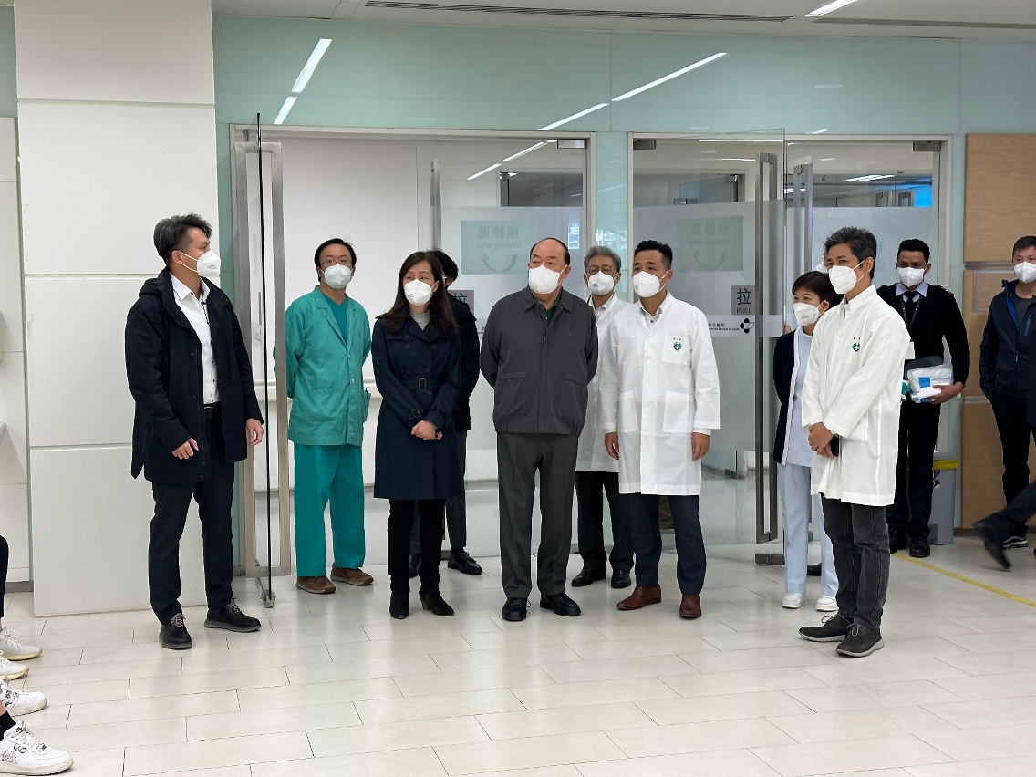 O Chefe do Executivo da Região Administrativa Especial de Macau (RAEM), Dr. Ho Iat Seng, acompanhado pela Secretária para os Assuntos Sociais e Cultura, Dr.ª Ao Ieong U, pelo Director dos Serviços de Saúde, Dr. Lo Iek Long e pela direcção do Centro Hospitalar Conde de São Januário (CHCSJ), fez uma visita, hoje (dia 25), ao Serviço de Urgência do CHCSJ. O Chefe do Executivo e a delegação visitaram a Urgência Geral, a Urgência Especial e a zona de atendimento dos doentes transportados por ambulâncias, tendo sido feita uma apresentação pelos representantes dos Serviços de Saúde sobre o mecanismo de triagem dos infectados, o processo de consulta médica e o aperfeiçoamento das respectivas medidas.