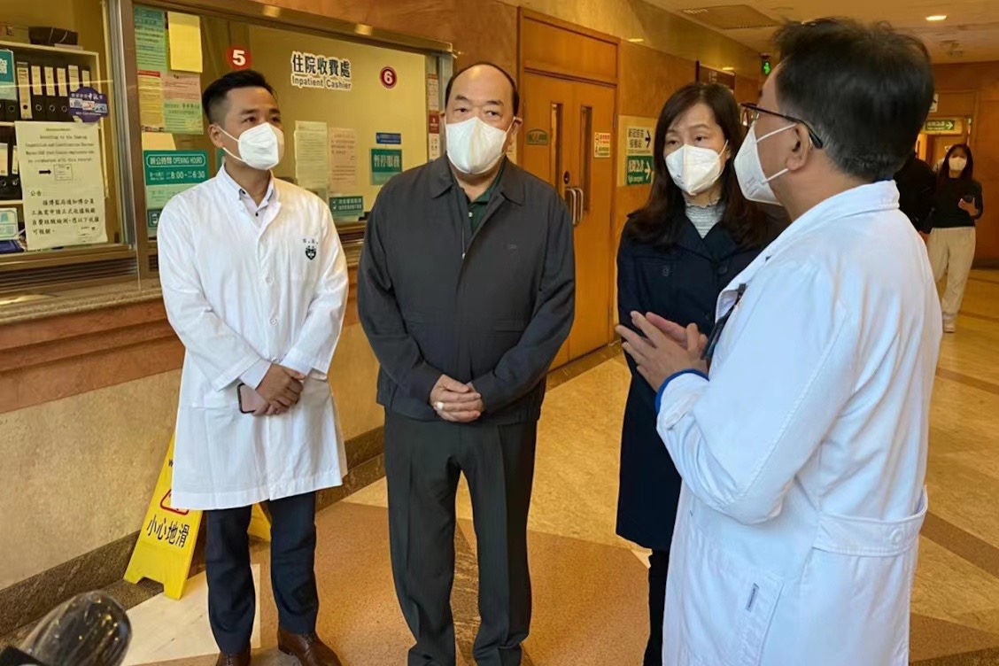 Por sua vez, o Director do CHCSJ, Dr. Kuok Cheong U, informou o Chefe do Executivo sobre o ponto de situação do trabalho dos profissionais de saúde. Actualmente, mais de 30% do pessoal do Hospital está infectado com COVID-19 e os recursos humanos são relativamente insuficientes. O CHCSJ recrutou urgentemente enfermeiros aposentados, enfermeiros estagiários e médicos dos internatos para integrarem a equipa antiepidémica. O CHCSJ também organizou uma parte dos colegas, em fase de reabilitação, para trabalhar nas áreas de infecção e nas enfermarias de isolamento.