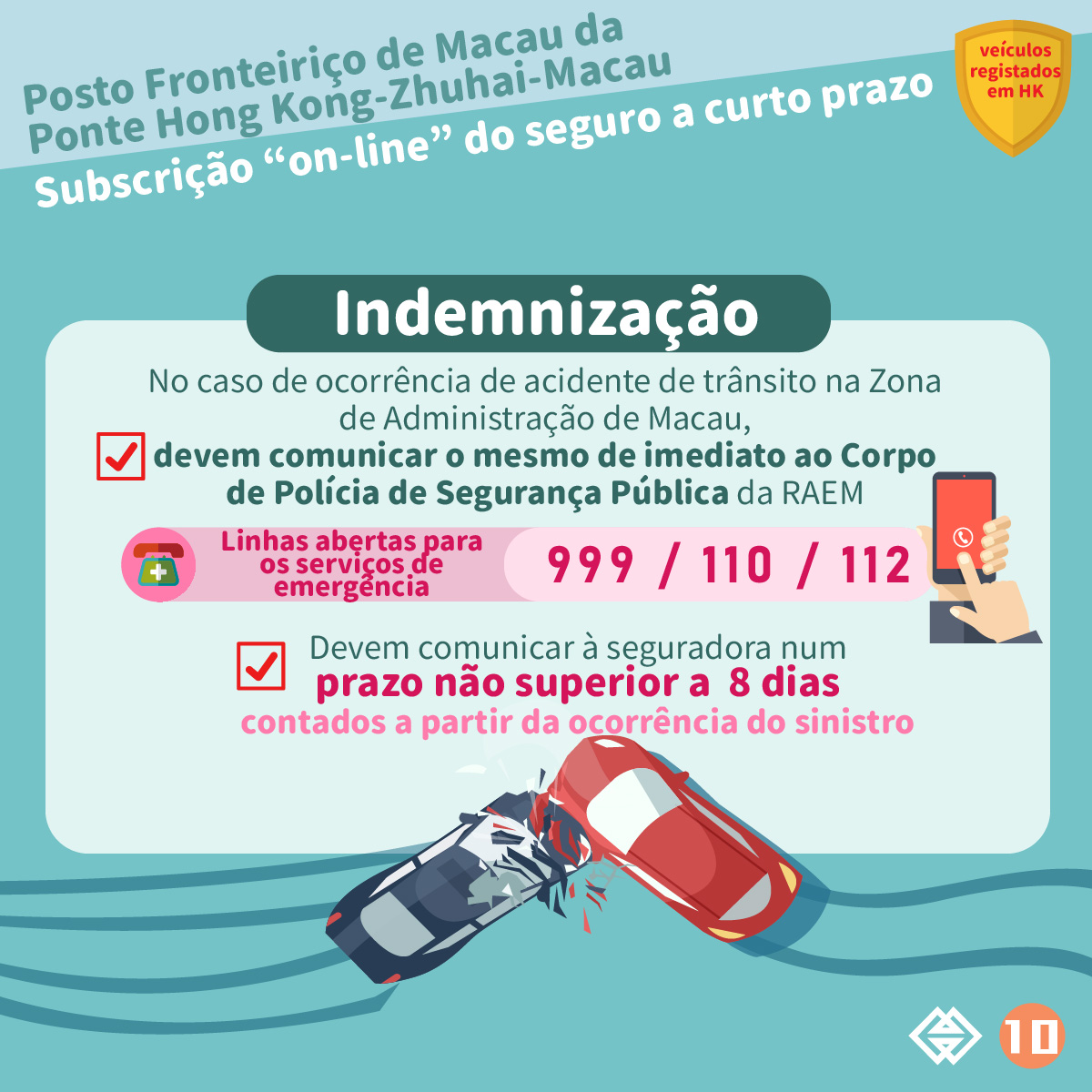 Os veículos registados em Hong Kong que circulam, de acordo com o «Regulamento de Utilização e Exploração do Auto-Silo Este do Posto Fronteiriço da Ponte Hong Kong-Zhuhai-Macau », nas áreas específicas da via pública, no auto-silo e nos corredores de passagem fronteiriça de migração, localizados no lado este do Posto Fronteiriço da Zona de Administração de Macau (sob a jurisdição de Macau) na Ilha Fronteiriça Artificial da Ponte Hong Kong-Zhuhai-Macau podem subscrever o seguro a curto prazo, de modo a obter cobertura para danos causados a terceiros ou responsabilidade civil de danos causados.