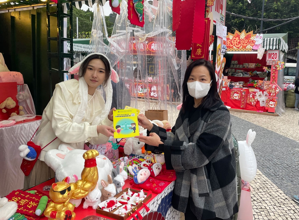 No sentido de proteger os direitos e interesses do consumidor, o Conselho de Consumidores (CC), os Serviços de Alfândega de Macau (SA), o Instituto para os Assuntos Municipais (IAM) e a Direcção dos Serviços de Economia e Desenvolvimento Tecnológico (DSEDT) realizaram uma acção conjunta de divulgação jurídica na Feira das Vésperas do Ano Novo Lunar, de modo a fortalecer a consciência dos operadores comerciais sobre o cumprimento da lei e assegurar o funcionamento ordenado da Feira de acordo com a lei.