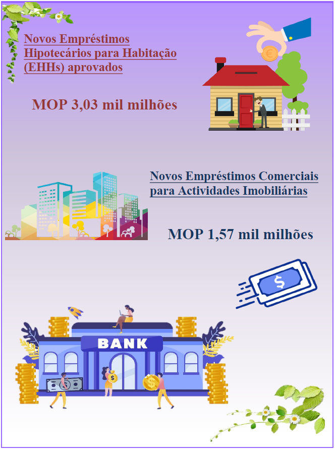 Em Dezembro de 2022, os novos EHHs aprovados pelos bancos de Macau cresceram 118,4% em relação ao mês transacto, até ao valor de MOP3,03 mil milhões. Dos quais, os novos EHHs aprovados aos residentes locais que representavam 86,4% do total, cresceram 89,6% e atingiram MOP2,62 mil milhões; o componente não-residente cresceu para MOP412,9 milhões. De Outubro a Dezembro de 2022, o número médio mensal dos novos EHHs aprovados atingiu MOP1,80 mil milhões, correspondendo a um aumento de 25,8% em comparação com o período anterior (De Setembro a Novembro de 2022).