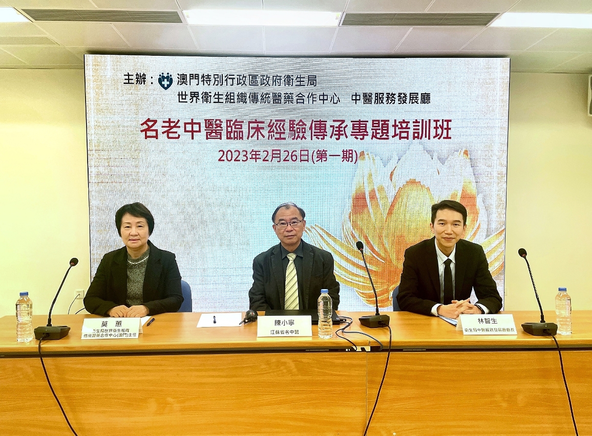 Recentemente, decorreu online a 1ª “Formação temática sobre a transmissão de experiências clínicas por médicos reconhecidos da medicina tradicional chinesa de 2023”, iniciativa organizada pelo Centro de Cooperação de Medicina Tradicional da OMS (Macau) em conjunto com o Departamento de Desenvolvimento dos Serviços de Medicina Tradicional Chinesa e unidades subordinadas aos Serviços de Saúde do Governo da Região Administrativa Especial de Macau. Nesta formação, o conceituado especialista de medicina tradicional chinesa (MTC) do Interior da China: Dr. Chen Xiaoning, médico famoso de MTC da Província de Jiangsu, foi convidado para realizar uma palestra temática sobre os “Cuidados de saúde para sequelas causadas pela COVID-19, por meio da MTC”.
