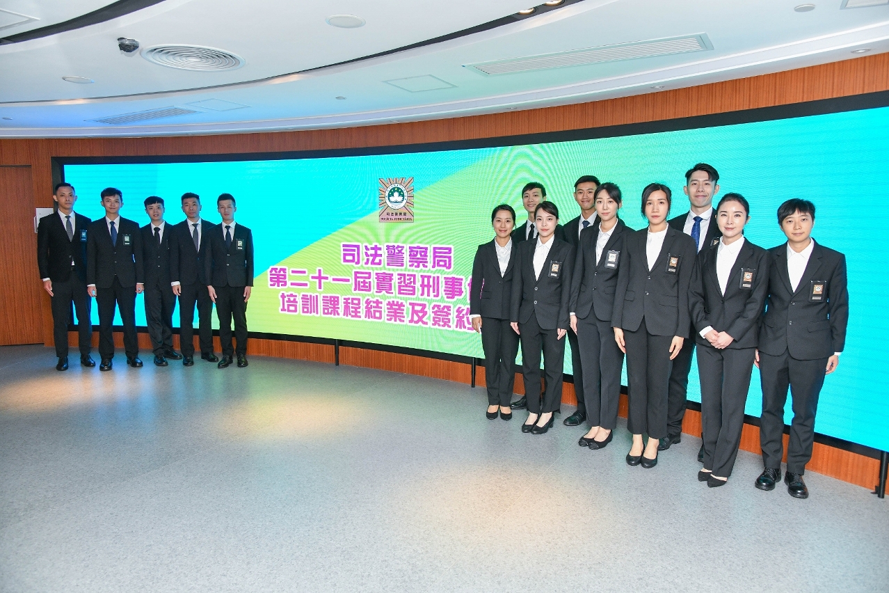 Para responder com eficácia a eventuais riscos devidos às mudanças da situação social, e melhorar a equipa policial, a PJ, realizou o “21.º Curso de Formação para Investigadores Criminais Estagiários”, entre 6 de Outubro de 2022 e 10 de Março de 2023, com uma duração efectiva de 767.5 horas. O conteúdo do curso abrange formação básica, a constituição e a lei básica, legislação penal, investigação criminal, criminalística, deontologia profissional, segurança informática e cibersegurança, policiamento de proximidade, técnicas práticas em operações policiais, e de formação específica no âmbito da segurança do Estado, combate ao branqueamento de capitais, investigação do crime informático e sua peritagem, negociação em situações de crise e finalmente, plano de evacuação em situações de “Storm Surge”. Os formadores são do Gabinete do Procurador, do Comissariado Contra a Corrupção de Macau, Comissariado da Auditoria, da Polícia Judiciária, Gabinete de Informação Financeira, Direcção de Inspecção e Coordenação de Jogos, dos Serviços de Saúde, da Universidade de Macau e da Cruz Vermelha de Macau.
