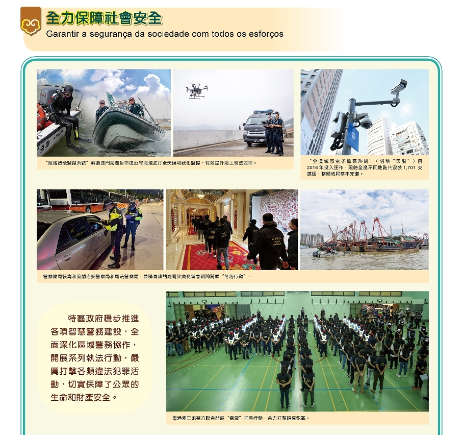 A exposição demonstra que o Governo da RAEM está determinado em garantir a segurança da sociedade com todos os esforços, em persistir na governação vocacionada para a população, e em melhorar constantemente a acção governativa e os demais trabalhos em prol do bem-estar da população.