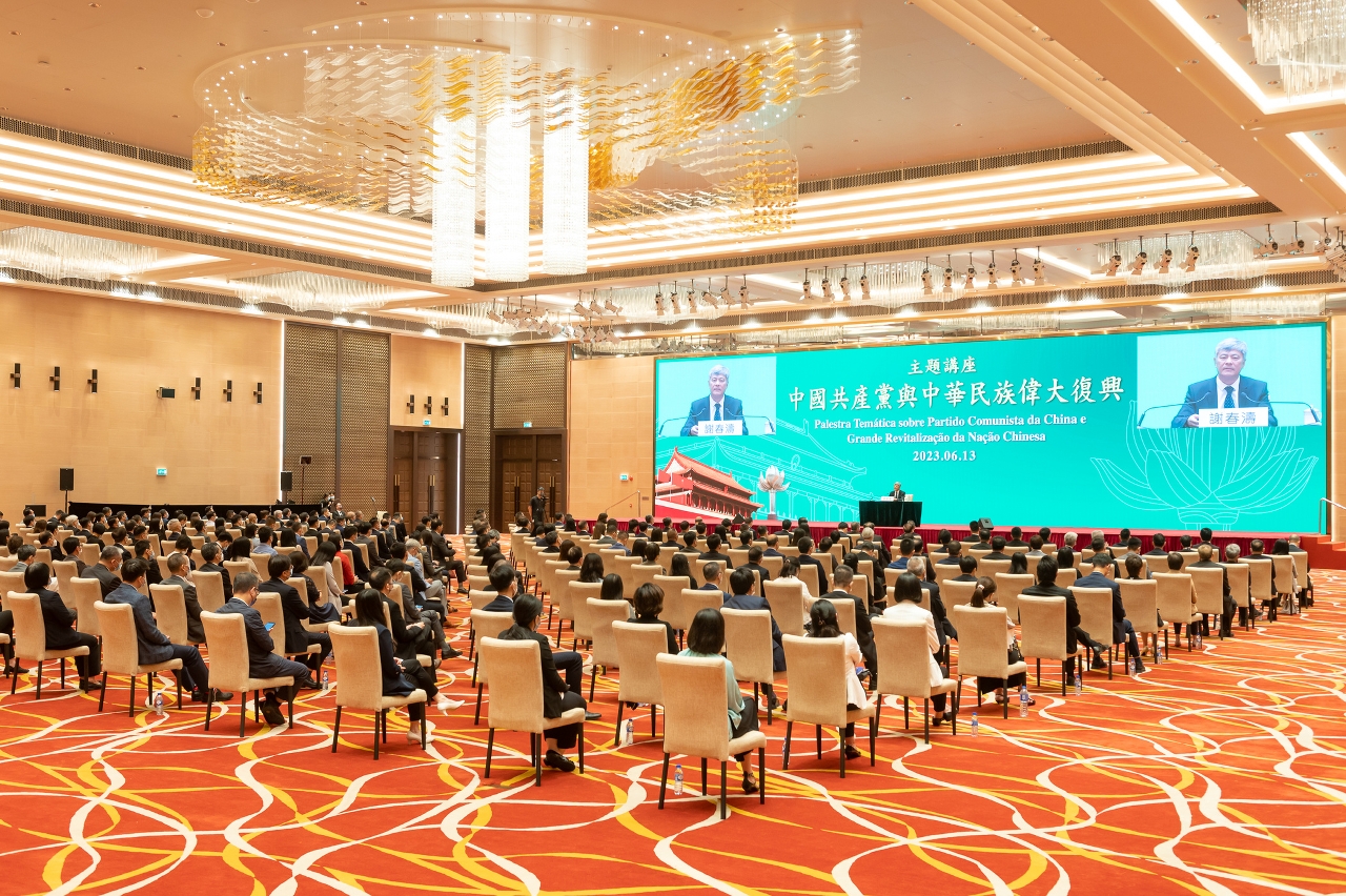 A fim de aprofundar os conhecimentos sobre o espírito do 20.º Congresso Nacional do Partido Comunista da China, o Governo da RAEM realizou, no dia 13 de Junho, no Complexo da Plataforma de Serviços para a Cooperação Comercial entre a China e os Países de Língua Portuguesa, a Palestra Temática sobre “Partido Comunista da China e Grande Revitalização da Nação Chinesa”, que foi proferida pelo Vice-Presidente para a gestão dos trabalhos diários do Instituto Nacional de Administração da China, Xie Chuntao.