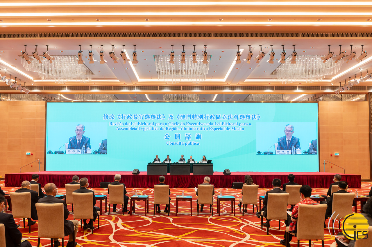 O Governo da Região Administrativa Especial de Macau (RAEM) realizou, hoje (dia 19), pelas 15:00 horas, no Complexo da Plataforma de Serviços para a Cooperação Comercial entre a China e os Países de Língua Portuguesa, a 1.ª sessão de consulta pública sobre a revisão da Lei Eleitoral para o Chefe do Executivo e da Lei Eleitoral para a Assembleia Legislativa da Região Administrativa Especial de Macau, no sentido de auscultar opiniões e sugestões dos deputados de Macau à Assembleia Popular Nacional, dos membros do Comité Nacional da Conferência Consultiva Política do Povo Chinês, bem como dos dirigentes e representantes do sector político e jurídico e das associações de diferentes sectores, entre outros.