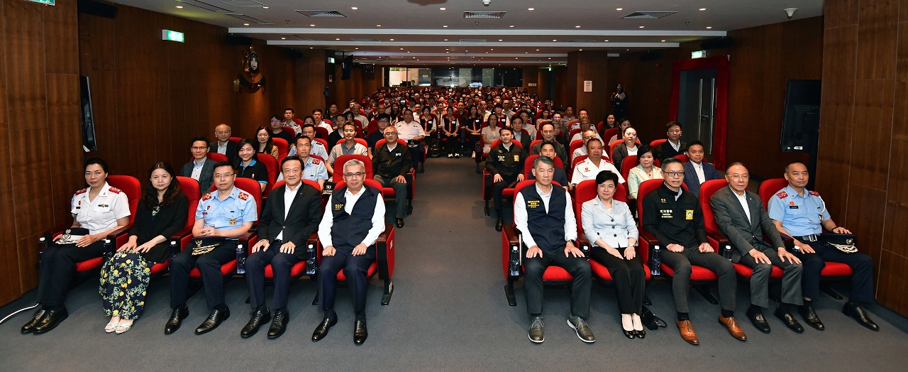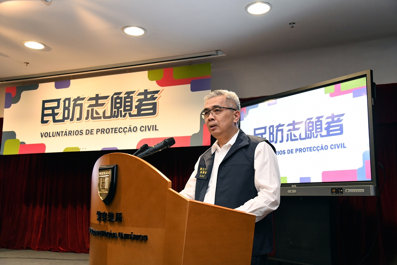Foi realizada, na tarde do dia 9, no Edifício de Serviços de Migração no Pac On, a Cerimónia de boas-vindas aos “Voluntários de Protecção Civil 2023” e simultaneamente de atribuição de louvores aos Voluntários de Protecção Civil (doravante “voluntários”) que participaram assiduamente nas actividades de protecção civil no ano transacto. O evento foi presidido pelo Senhor Secretário para a Segurança, Wong Sio Chak, e contou com a presença do Senhor Comandante-geral dos Serviços de Polícia Unitários (SPU), Leong Man Cheong, bem como os representantes das entidades que compõem a estrutura de protecção civil. O evento contou ainda com a presença dos representantes dos serviços formadores e das associações que compõem o Mecanismo de Ligação Comunitária de Protecção Civil.
