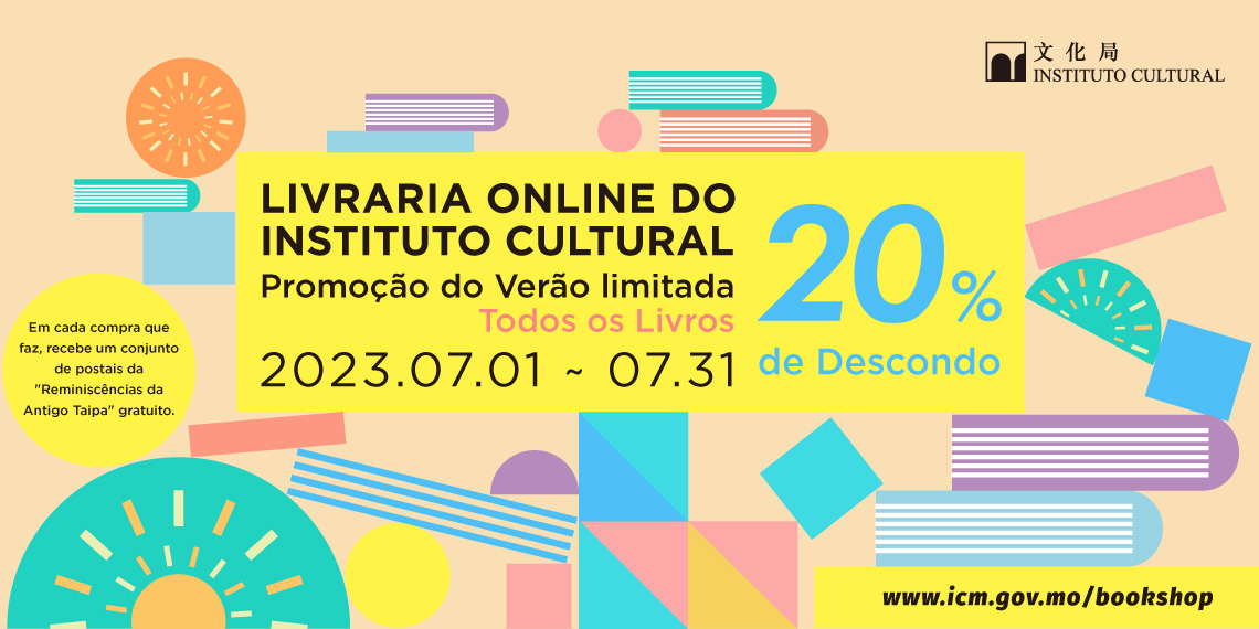 A Livraria Online do Instituto Cultural (IC) oferece uma promoção especial até 31 de Julho. O público pode desfrutar de um desconto de 20% na aquisição de todas as publicações na Livraria Online e de 10% e 50% nas edições mais recentes e antigas da Revista de Cultura, respectivamente. A segunda promoção é a oferta de um conjunto de postais de livros denominado “Reminiscências da Antiga Taipa”, em qualquer compra efectuada (ou seja, por cada transacção) na Livraria Online, durante o período acima referido. Os postais são limitados e estão sujeitos a disponibilidade.