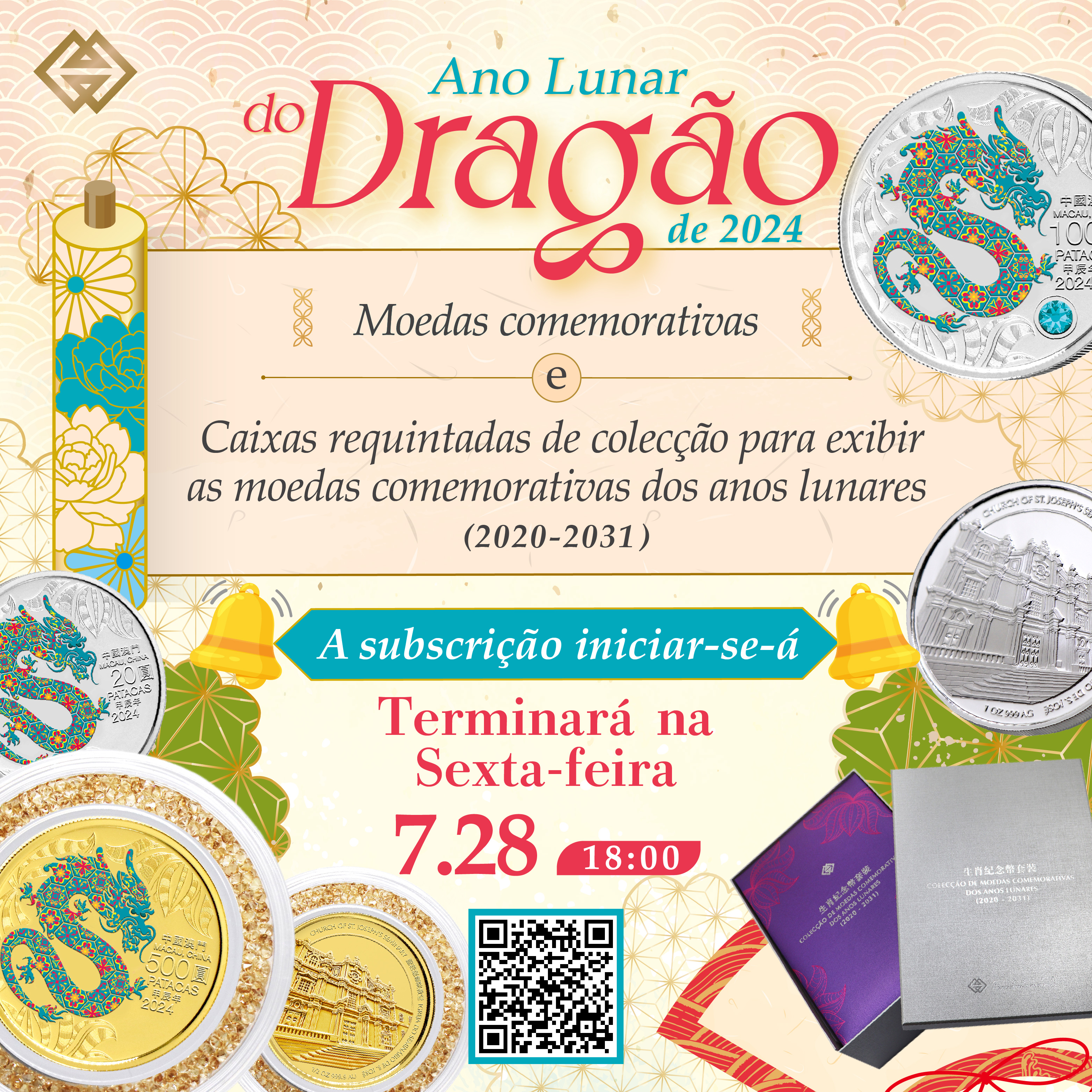 • O prazo para subscrição das moedas comemorativas do Ano Lunar do Dragão e a caixa requintada de colecção termina na sexta-feira
