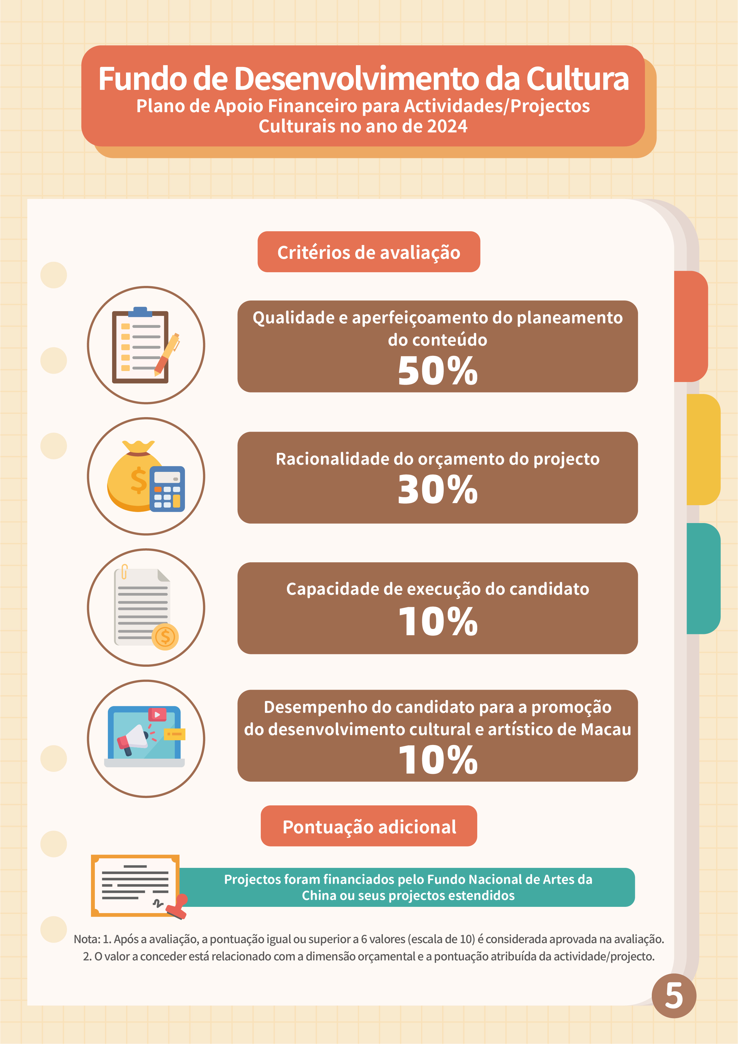 O Fundo de Desenvolvimento da Cultura (FDC) lança o “Plano de apoio financeiro para actividades/projectos culturais no ano de 2024” e o “11.º Plano de subsídio à criação de amostras de design de moda”, com vista a enriquecer a atmosfera cultural dos bairros comunitários e promover o desenvolvimento da indústria de design de moda em Macau.