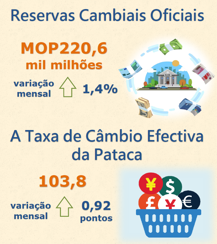 A Autoridade Monetária de Macau (AMCM), divulga hoje (dia 14) as estimativas preliminares das reservas cambiais da RAEM, que se cifraram em MOP220,6 mil milhões (USD27,30 mil milhões) no final de Agosto de 2023, tendo aumentado 1,4% relativamente aos dados rectificados do mês anterior, que atingiram MOP217,4 mil milhões (USD27,07 mil milhões). No final de Agosto de 2023, as reservas cambiais da RAEM registaram cerca de 11 vezes em relação à circulação monetária, ou 88,0% do agregado monetário M2 em MOP, no final de Julho de 2023.