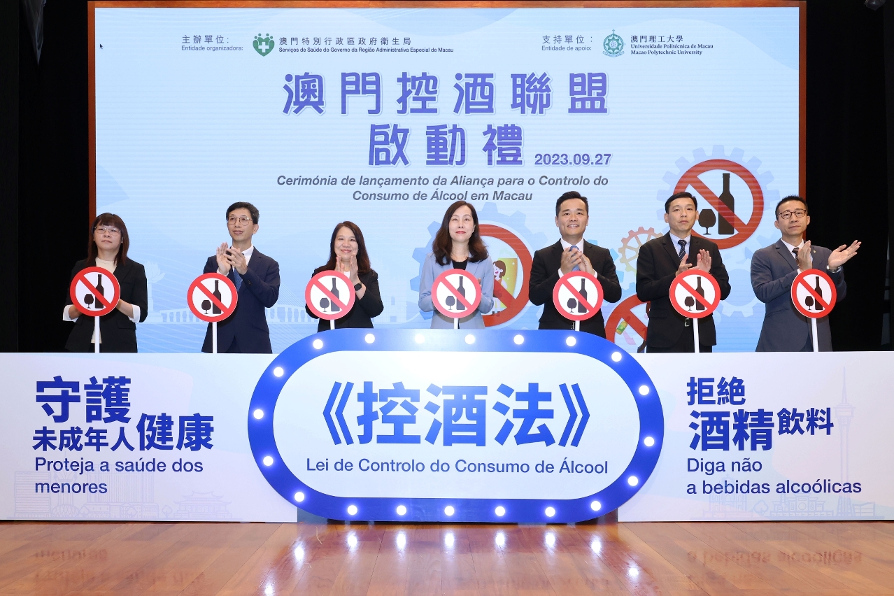 A Dr.a Elsie Ao Ieong U, Secretária para os Assuntos Sociais e Cultura; Dr.a Ho Ioc San, Chefe do Gabinete da Secretária para os Assuntos Sociais e Cultura; Dr. Alvis Lo Iek Long, Director dos Serviços de Saúde; Dr. Hon Wai, Director do Instituto de Acção Social; Dr. Hoi Io Meng, Subdirector da Direcção dos Serviços de Turismo; Dr.a To Sok I, Administradora do Conselho de Administração para os Assuntos Municipais do Instituto para os Assuntos Municipais; Dr. Un Kim Fong, Chefe, substituto, do Departamento do Corpo de Polícia de Segurança Pública, estiveram presentes, como convidados de honra, na cerimónia de inauguração e foi anunciada a “Aliança para o Controlo do Consumo de Álcool de Macau” organizada pelos Serviços de Saúde na quarta-feira, no dia 27.