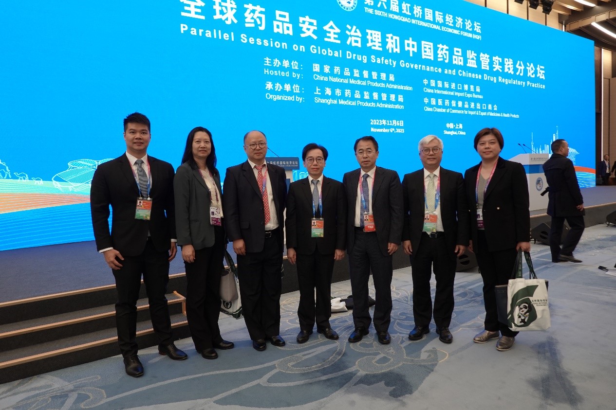 Teve lugar recentemente em Xangai o 6.º Fórum Económico Internacional Hongqiao, uma parte importante da 6.ª Exposição Internacional de Importação da China (CIIE, na sigla em inglês). Nesta edição do fórum subordinado ao tema “Colaboração para Promover o Desenvolvimento, Abertura para Ganhar o Futuro”, a Administração Nacional de Produtos Médicos realizou, pela primeira vez, o “Sub-fórum sobre a Governação Global da Segurança dos Medicamentos e as Práticas Chinesas de Supervisão dos Medicamentos” (doravante designado por “Fórum de Supervisão dos Medicamentos”). A convite da Administração Nacional de Produtos Médicos, o Presidente do Instituto para a Supervisão e Administração Farmacêutica (ISAF), Choi Peng Cheong, o Vice-Presidente, Ng Kuok Leong, e o Chefe da Divisão de Medicamentos Químicos e Dispositivos, Chan Tak In, participaram no Fórum de Supervisão dos Medicamentos, realizando intercâmbios e trocas de opiniões sobre diversos temas na área de supervisão e administração farmacêutica com os dirigentes da Administração Nacional de Produtos Médicos e das autoridades de supervisão farmacêutica de várias províncias e municípios do Interior da China, bem como com os especialistas, estudiosos, representantes de associações industriais e de empresas farmacêuticas.