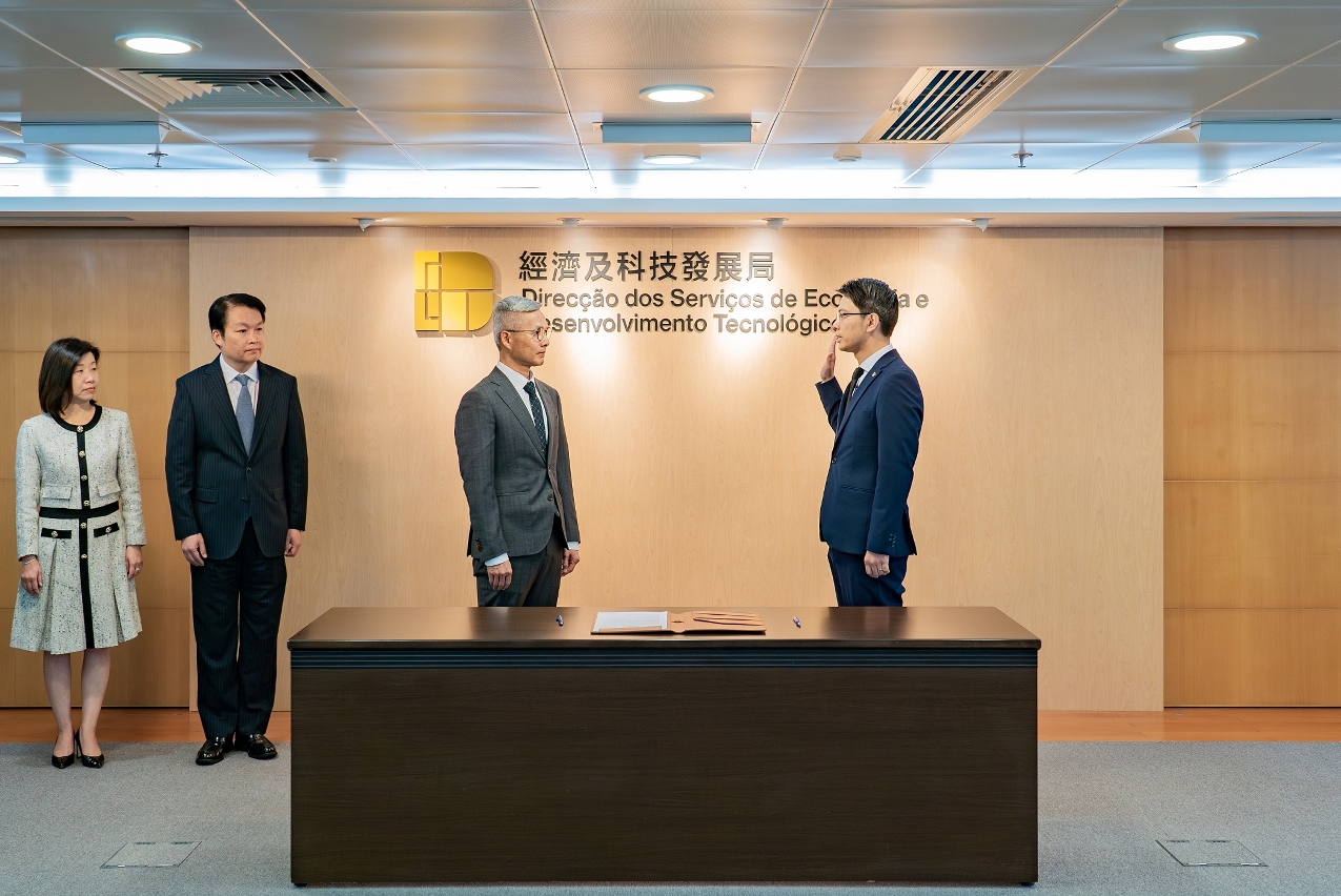 Realizou-se hoje (dia 11), na sede da Direcção dos Serviços de Economia e Desenvolvimento Tecnológico (DSEDT), a cerimónia de tomada de posse do subdirector da DSEDT, Pong Kai Fu, que foi presidida pelo director da DSEDT, Tai Kin Ip, e testemunhada pelo Secretário para a Economia e Finanças, Lei Wai Nong e pela chefe do Gabinete do Secretário para a Economia e Finanças, Ku Mei Leng.