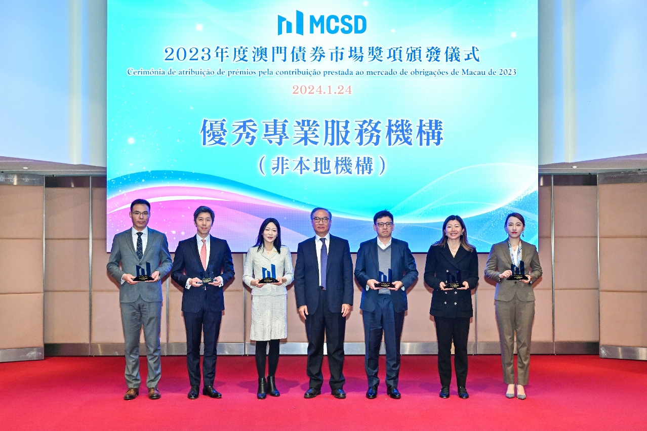 A Autoridade Monetária de Macau (AMCM) e a Central de Depósito e Liquidação de Valores Mobiliários de Macau Sociedade Unipessoal Limitada (MCSD) organizaram, em 24 de Janeiro, um evento com o objectivo de comemorar o segundo aniversário da MCSD na Salão de Lótus do Edifício World Trade Center, sendo a AMCM a unidade de suporte na qualidade de sócio maioritário. Durante o evento, foram atribuídos vários prémios para reconhecer a contribuição prestada pelos participantes para o mercado obrigacionista de Macau em 2023.
