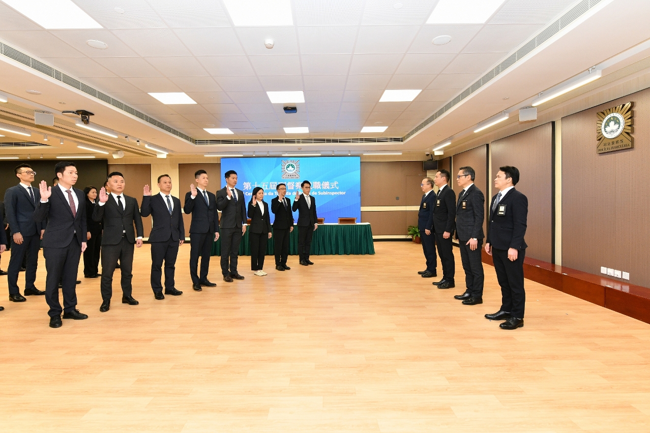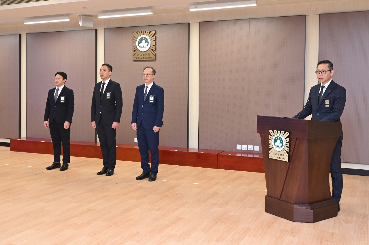 A PJ realizou a cerimónia da tomada de posse de inspectores de 2.ª classe e de subinspectores a qual teve lugar em 25 de Janeiro de 2024, e foi presidida pelo director, SIT Chong Meng. Os 10 subinspectores, LAI Man Vai, SAM Kam Weng, CHAN Chong In, LAI Chio Hong, CHAN Lai Cheng, CHOI Ian Fai, CHAN Wun Man, CHE Peng Kun, LEONG Kuok Hei e VU Chi Leong, prestaram juramento como inspectores de 2.ª classe, tendo os 16 investigadores criminais principais, LOI Chi Pan, CHEONG Siu Keong, TAM Man Kin, CHONG Kam Leong, KUOK Pan Pan, LAU Weng Kun, LAM Iek, LONG Hon Wai, NG Chi Kong, CHIU CHU Wai Man, CHANG Chi Fai, LAI Seong Man, HO Tai Meng, HOI Wai Pan, LAU Chun Wai e CHEANG Chi Fai, prestado juramento como subinspectores.