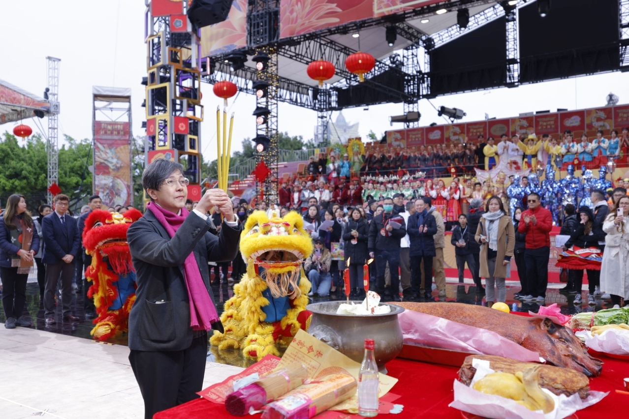 A Direcção dos Serviços de Turismo (DST) realizou hoje (dia 8), na Praça do Lago Sai Van, a cerimónia tradicional de bênção para o sucesso do evento “Celebrações do 25.º Aniversário do Estabelecimento da R.A.E.M. - Parada de Celebração do Ano do Dragão 2024”. Este ano, a Parada de Celebração do Ano do Dragão terá lugar no terceiro e no oitavo dia do Ano Novo Lunar (12 e 17 de Fevereiro), respectivamente, no centro e na zona norte da cidade, para celebrar a chegada do Ano do Dragão com residentes e visitantes e promover o turismo comunitário e a economia nocturna.