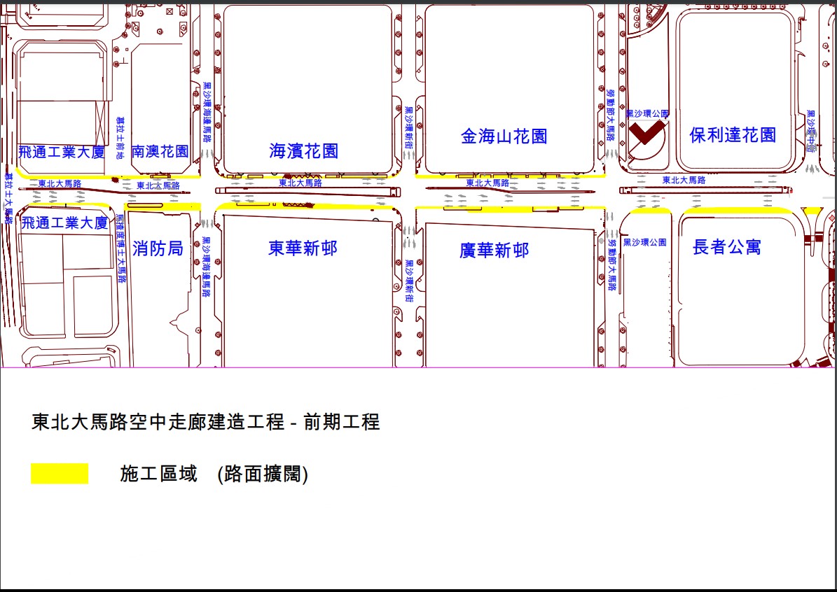 A obra preliminar da rede viária da travessia pedonal ao longo da Avenida do Nordeste teve início em Dezembro de 2023 numa parte dos troços. Com o avanço da obra, nos restantes troços da Avenida do Nordeste, serão iniciados gradualmente os vários trabalhos, nomeadamente alargamento da faixa de rodagem, transplantação de árvores, transferência e alteração das instalações de trânsito e das instalações municipais e realização de sondagem geológica, sendo implementadas, durante o respectivo período, as medidas de condicionamento ao trânsito num troço da Avenida do Nordeste entre a Avenida de Venceslau de Morais e a Rua Central da Areia Preta em articulação com as necessidades de execução da obra, nesse sentido, apela-se aos condutores para prestarem atenção às sinalizações de trânsito no local e aos troços envolvidos na obra (vide desenho), estando a conclusão da obra preliminar da rede viária prevista para Maio de 2024, de modo a articular com o início posterior da obra da estrutura da travessia pedonal.