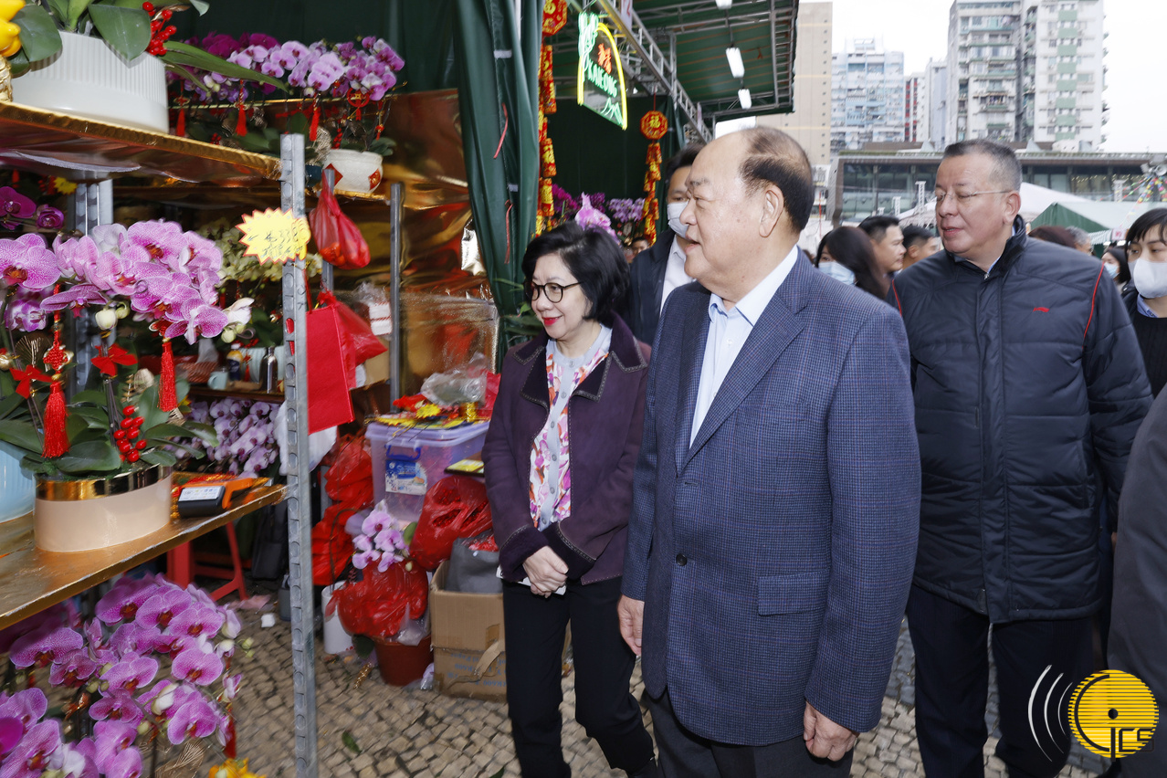 O Chefe do Executivo, Ho Iat Seng, e a esposa deslocaram-se, esta tarde (9 de Janeiro), à Praça do Tap Seac para visitar a feira de flores e as duas zonas de queima de panchões na península de Macau e na Taipa, e assim receber o Ano Novo Lunar e partilhar a felicidade da época festiva com proprietários de bancas, residentes e turistas.