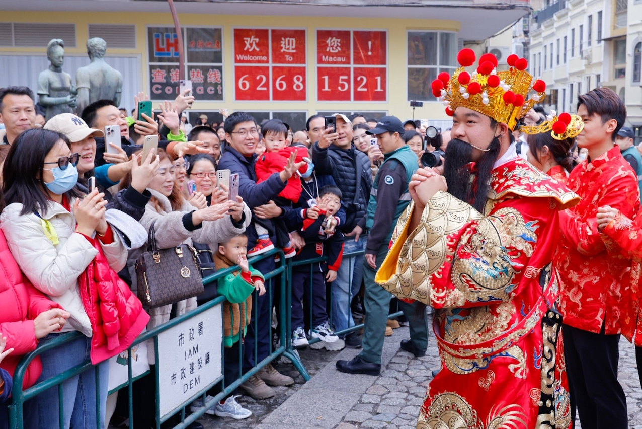 As “Actividades do Ano Novo Chinês 2024”, que são um dos itens incluídos pelo Ministério da Cultura e Turismo da China no quadro das actividades “Feliz Ano Novo Chinês”, incluem entre os espectáculos itinerantes o desfile do dragão gigante dourado de 238 metros de comprimento e 18 leões, em conjunto com o Deus da Fortuna, os três Deuses da Felicidade, Longevidade e Prosperidade, par de meninos, o dragão do zodíaco chinês e a mascote do turismo de Macau “Mak Mak”, que ofereceram votos de um bom Ano Novo Lunar aos residentes e visitantes e distribuíram lingotes de ouro. Liderados pelo cortejo, os convidados seguiram para o Largo do Senado para rebentar panchões, simbolizando a despedida do ano que terminou, e o início do programa das actividades festivas itinerantes de dois dias.