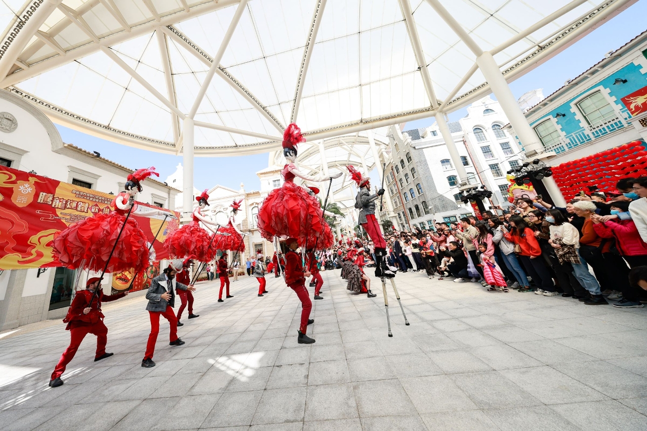 Por outro lado, parte das exibições itinerantes das “Actividades do Ano Novo Chinês 2024” foram estendidas à vila da Taipa, com encontro da mascote do turismo de Macau “Mak Mak” com o público, distribuição de lingotes de ouro pelos três Deuses da Felicidade, Longevidade e Prosperidade, exibição grupo de actuação de Portugal (Marcha da Madragoa), entre outros, para proporcionar um ambiente festivo aos residentes e visitantes do Festival da Primavera.