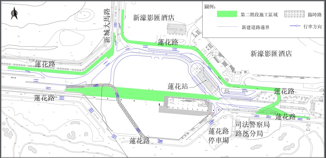 2. A segunda fase incidirá na faixa de rodagem do outro lado da Ponte Flor de Lótus em direcção à Estrada Flor de Lótus, sendo que a faixa de rodagem, da Estrada Flor de Lótus em direcção à Avenida Cidade Nova, será encerrada, os veículos passam a circular da nova via em direcção à Avenida Cidade Nova. A obra será executada durante o período entre meados de Julho e meados de Agosto de 2024, mantendo-se, durante o respectivo período, a circulação condicionada numa única via e dois sentidos da Avenida Cidade Nova.