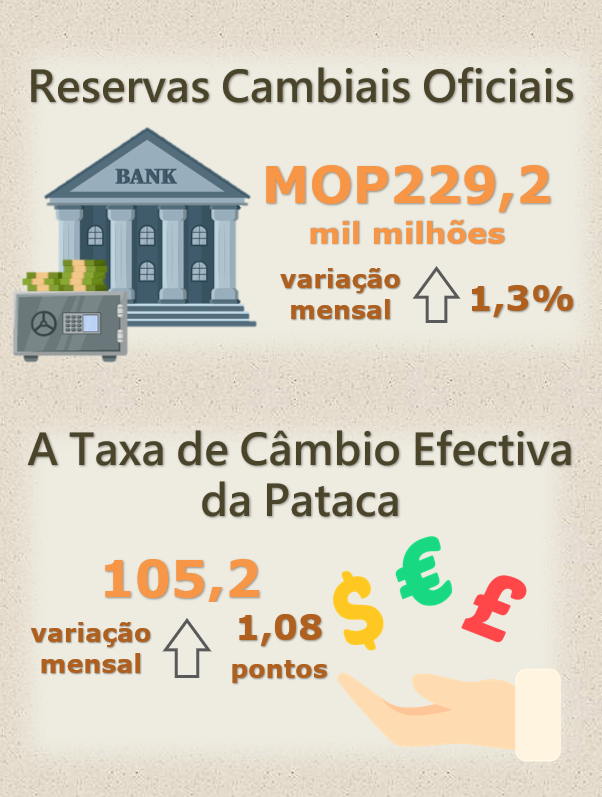 A taxa de câmbio efectiva da pataca, ponderada pelas suas quotas do comércio, foi de 105,2 em Abril de 2024, registaram acrescimentos de 1,08 pontos e 4,09 pontos, respectivamente, em comparação com os dados registados no mês anterior e os reportados a Abril de 2023, implicando que globalmente, a pataca subiu face às moedas dos principais parceiros comerciais de Macau.