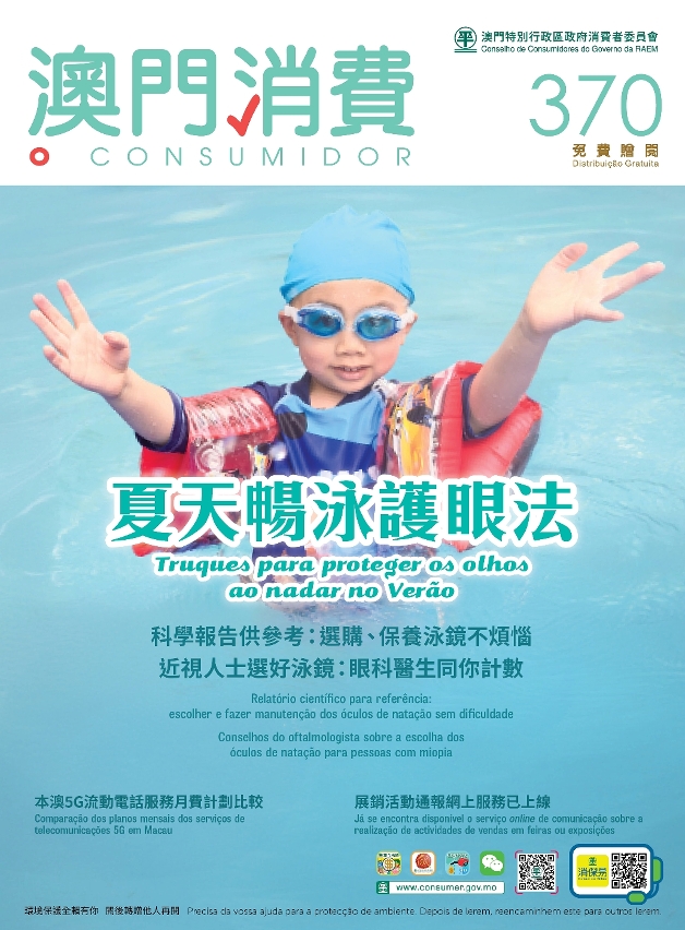O recém-lançado boletim “O Consumidor” n.º 370 publicou o relatório de teste de 19 óculos de natação para referência dos consumidores, assim como a entrevista com um oftalmologista que deu os conselhos profissionais sobre a escolha e o uso dos óculos de natação graduados para as pessoas com miopia. Também apresentou o resultado da comparação dos planos mensais dos serviços de telecomunicações 5G de Macau. Os consumidores podem visualizar o dito boletim na página electrónica do Conselho de Consumidores (CC), para consultar os relatórios de teste e investigação do CC e as informações referentes ao consumo inteligente.