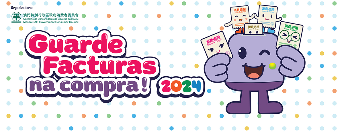 No sentido de incentivar os residentes a criar e consolidar o hábito de guardar recibos, o CC realiza constantemente a actividade “Guarde facturas na compra!”. A actividade “Guarde facturas na compra! 2024” divide-se em 4 fases, podendo participar na mesma todos os residentes de Macau que tenham completado 3 anos de idade até ao termo da actividade.