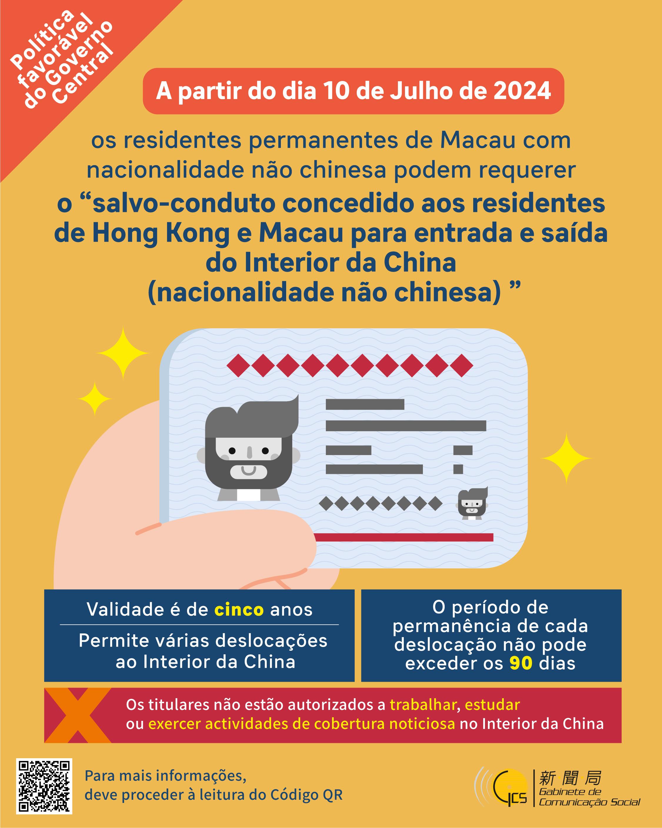 Política favorável do Governo Central - facilita a deslocação de residentes permanentes de Macau com nacionalidade não chinesa ao Interior da China