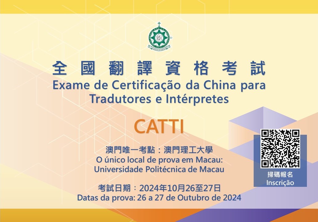 O Exame de Acreditação para Tradutores e Intérpretes da China (CATTI) 2024 realizar-se-á entre 26 e 27 de Outubro na Universidade Politécnica de Macau (UPM). Como o único local de exame em Macau, a Faculdade de Línguas e Tradução (FLT) da UPM disponibilizará os exames de proficiência em tradução e interpretação Inglês-Chinês e Português-Chinês. As inscrições online estão abertas a partir de hoje e até 20 de Setembro, sendo bem-vinda a participação activa dos interessados de todos os sectores.