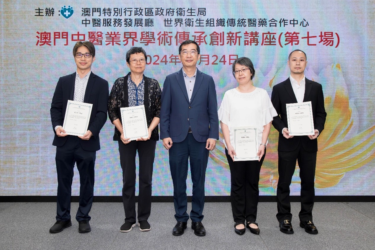 O Departamento de Desenvolvimento dos Serviços de Medicina Tradicional Chinesa dos Serviços de Saúde e o Centro de Cooperação de Medicina Tradicional da Organização Mundial de Saúde (Macau) realizaram, nos últimos dias, em conjunto, a 7.ª “Palestra sobre a Transmissão e Inovação Académica do Sector da Medicina Tradicional Chinesa de Macau”, tendo sido convidados como oradores principais, quatro médicos de medicina tradicional chinesa locais, com vasta experiência, Choi Wai Ieng, Tam Chit U, Leong Man Chon e Lai Seng Hoi, para partilharem as suas experiências clínicas e profissionais, com o sector da medicina tradicional chinesa. A actividade contou com a presença do Subdirector dos Serviços de Saúde, Dr. Cheang Seng Ip, da Coordenadora do Centro de Cooperação de Medicina Tradicional da Organização Mundial da Saúde (Macau), Dr.ª Mo Hui, e foi presidida pelos mesmos.