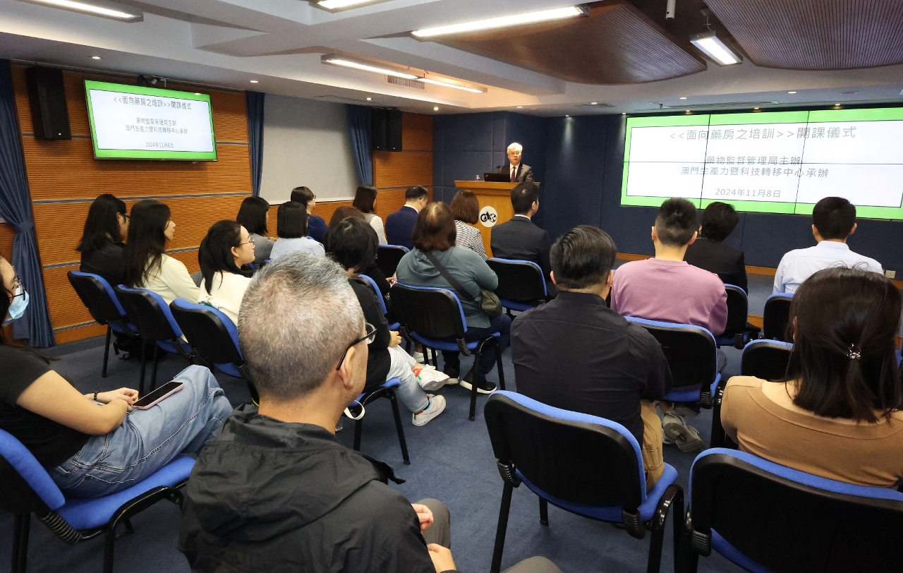 O “Curso de formação para farmácias”, organizado pelo Instituto para a Supervisão e Administração Farmacêutica (ISAF) e realizado pelo Centro de Produtividade e Transferência de Tecnologia de Macau (CPTTM), teve lugar nos dias 8 e 14 de Novembro do corrente ano, e realizou-se uma cerimónia de abertura simples e solene no dia 8.