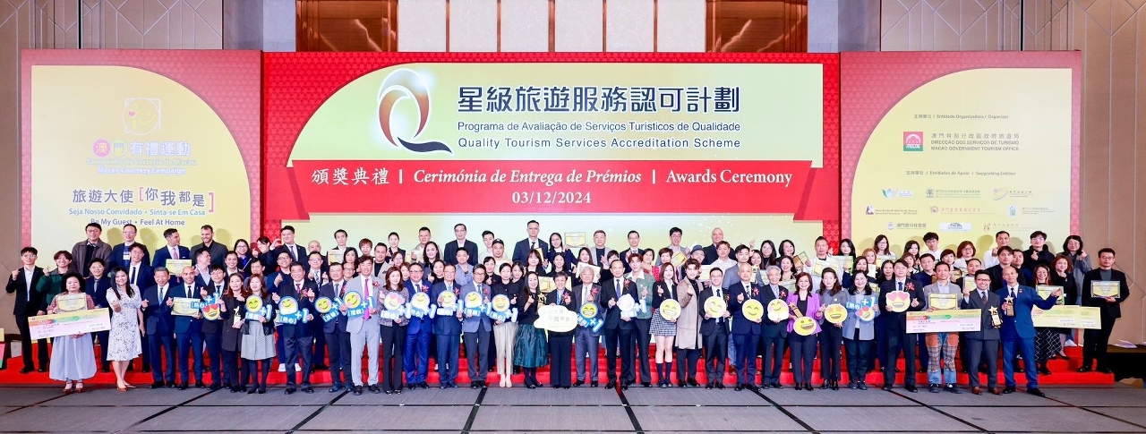 A Direcção dos Serviços de Turismo (DST) realizou hoje (dia 3) a cerimónia de entrega de prémios para os sectores da restauração e das agências de viagens do Programa de Avaliação de Serviços Turísticos de Qualidade de 2024. Entre os premiados estiveram as empresas de restauração e agências de viagens que participaram ou voltaram a concorrer este ano no programa. Este ano, 312 estabelecimentos de restauração e 44 agências de viagens foram galardoados com o Prémio Empresa de Qualidade, por promoverem a prestação de serviços turísticos de qualidade e construírem em conjunto um destino turístico de qualidade.