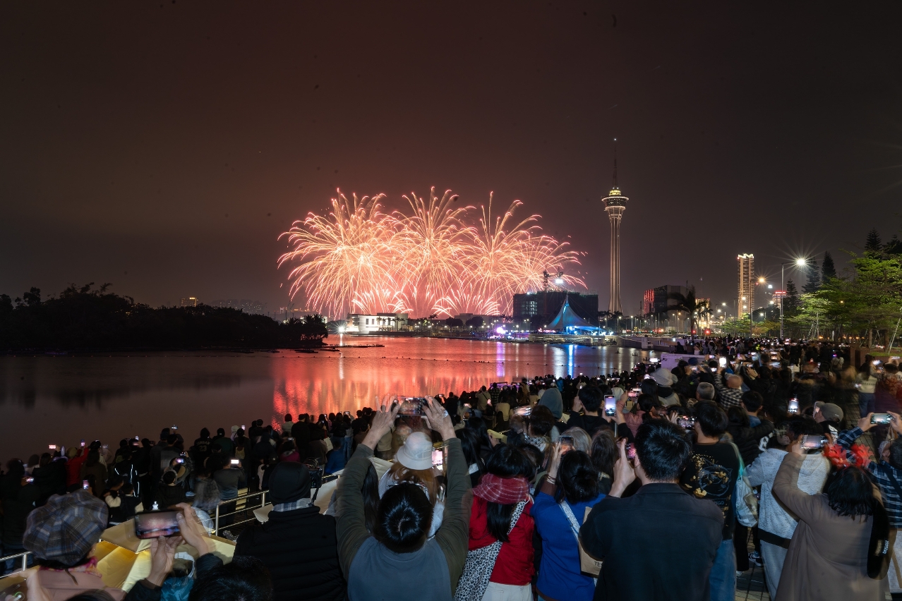 O “Espectáculo de Fogo-de-Artifício para as Celebrações do 25.º Aniversário do Estabelecimento da RAEM”, apresentado pela Direcção dos Serviços de Turismo (DST) no ano em que se celebra o “duplo aniversário”, teve lugar esta noite (dia 25). O espectáculo de fogo-de-artifício, que se juntou ao grande evento nocturno Iluminar Macau 2024, para dar a sentir aos residentes e visitantes a alegria da celebração do 25.º aniversário do retorno de Macau à Pátria, decorreu num ambiente de grande animação, mostrando a vitalidade do “turismo + eventos” de Macau.