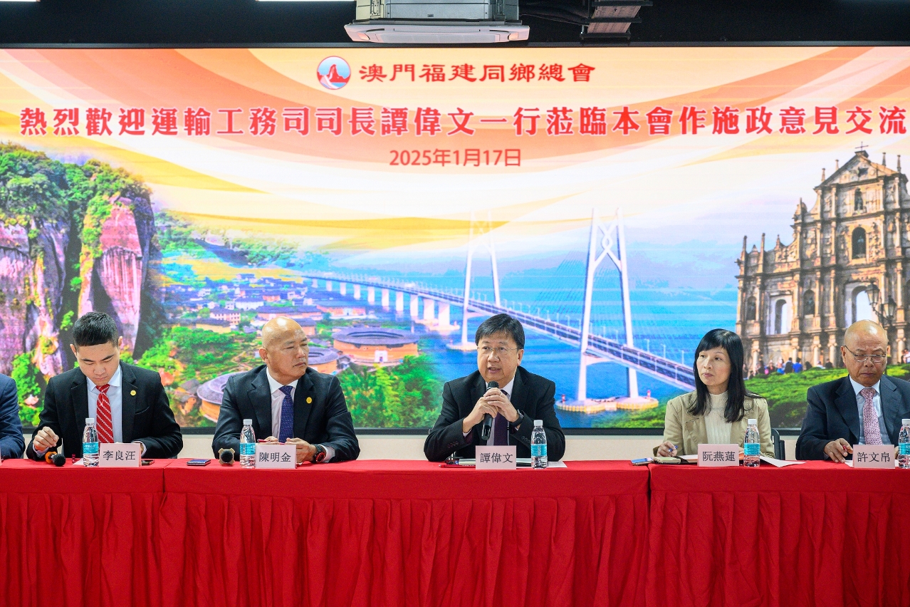 O secretário para os Transportes e Obras Públicas, Tam Vai Man, continuou, hoje (17 de Janeiro), a visita às associações e, esta manhã, esteve na Associação Geral dos Conterrâneos de Fukien de Macau, onde realizou uma palestra para auscultar e recolher as opiniões e sugestões dos seus representantes no âmbito das linhas de acção governativa da área dos transportes e obras públicos para o corrente ano.