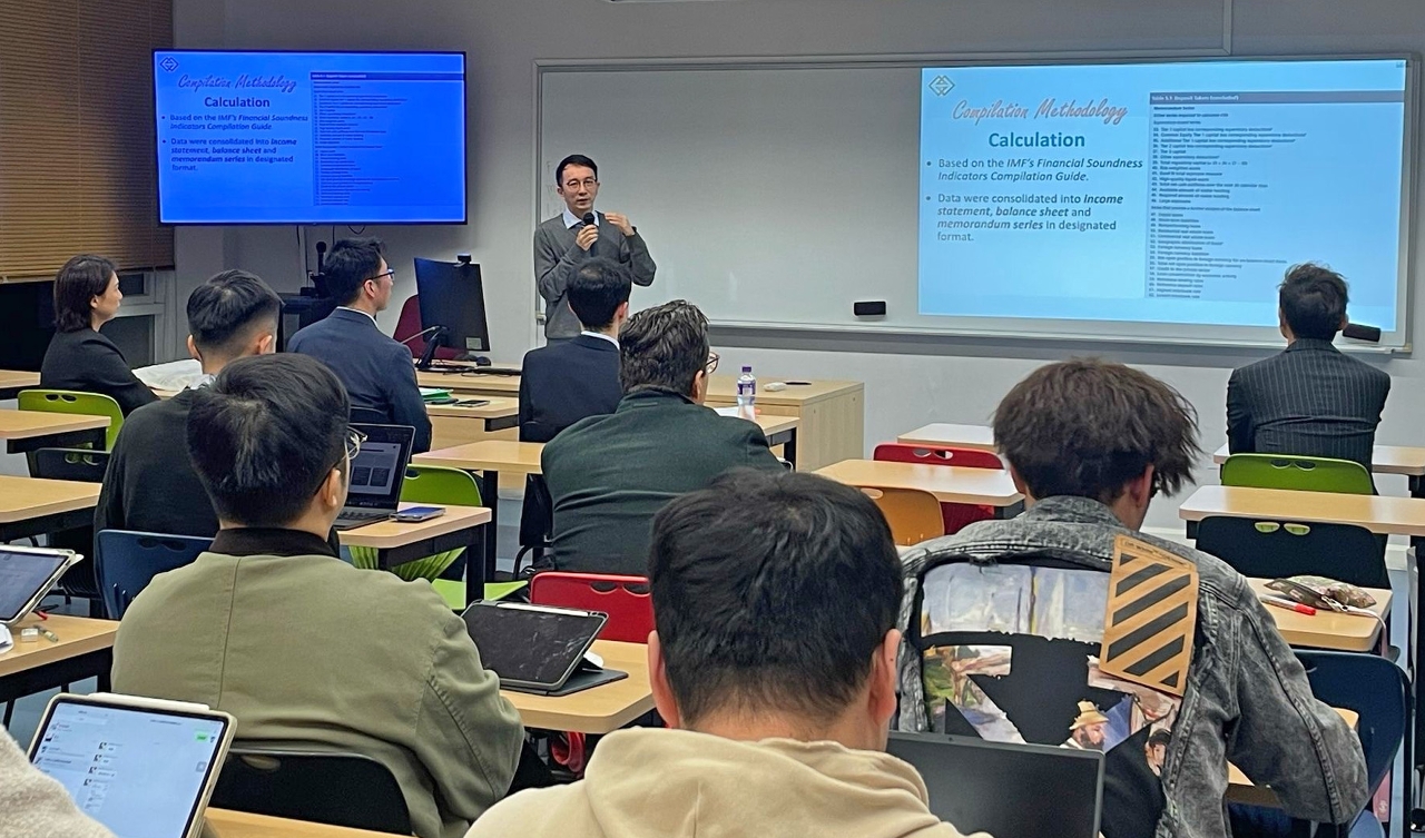 Com vista a reforçar o conhecimento dos jovens sobre estatísticas oficiais e a promover a aplicação de dados estatísticos, a Direcção dos Serviços de Estatística e Censos (DSEC) e a Autoridade Monetária de Macau (AMCM) têm vindo a realizar, desde 2022, de forma contínua e em colaboração, a “Palestra temática sobre as estatísticas oficiais destinada a instituições do ensino superior”. Recentemente, os representantes da DSEC e da AMCM participaram numa palestra realizada na Universidade de São José, tendo apresentado os trabalhos de compilação das estatísticas oficiais, o Produto Interno Bruto (PIB), os Indicadores de Estabilidade Financeira de Macau, entre outros indicadores estatísticos frequentemente usados. A palestra em causa contou com a participação de mais de 20 professores e estudantes dos cursos de mestrado da Faculdade de Negócios e Direito da referida universidade.