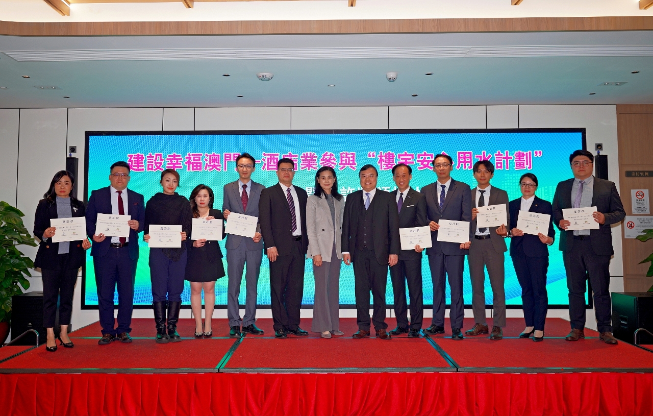 A fim de incentivar o sector hoteleiro de Macau a participar no “Programa de garantia de qualidade de água em edifícios”, a Direcção dos Serviços de Assuntos Marítimos e de Água (DSAMA) e a Associação dos Hoteleiros de Macau organizaram, em conjunto, no dia 17 de Março (segunda-feira), pelas 15:00 horas, a “Cerimónia de mobilização e entrega de louvor no âmbito do Programa de garantia de qualidade de água em edifícios - Construir uma Macau feliz”, na qual foram atribuídos louvores a 10 hotéis-membros participantes no referido Programa.