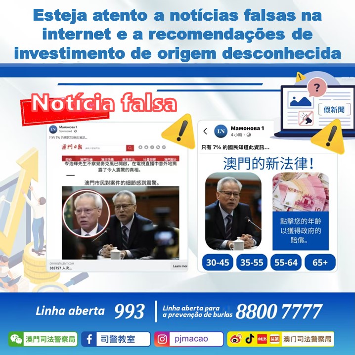 Nos últimos anos, tem-se vindo a registar um aumento significativo de casos de burlas relacionadas com investimentos. Anteriormente, a Polícia Judiciária já havia emitido um alerta, sublinhando que os burlões se fazem passar por titulares dos principais cargos governamentais de diversas regiões em entrevistas divulgadas na internet, com o intuito de atrair vítimas para planos de investimento que prometem rendimentos elevados. Neste tipo de burlas, inicialmente, algumas vítimas conseguem, de facto, obter pequenos lucros e realizar levantamentos. No entanto, ao aumentarem o montante investido, acabam por constatar que já não conseguem efectuar levantamentos, apercebendo-se, então, de que foram enganadas.