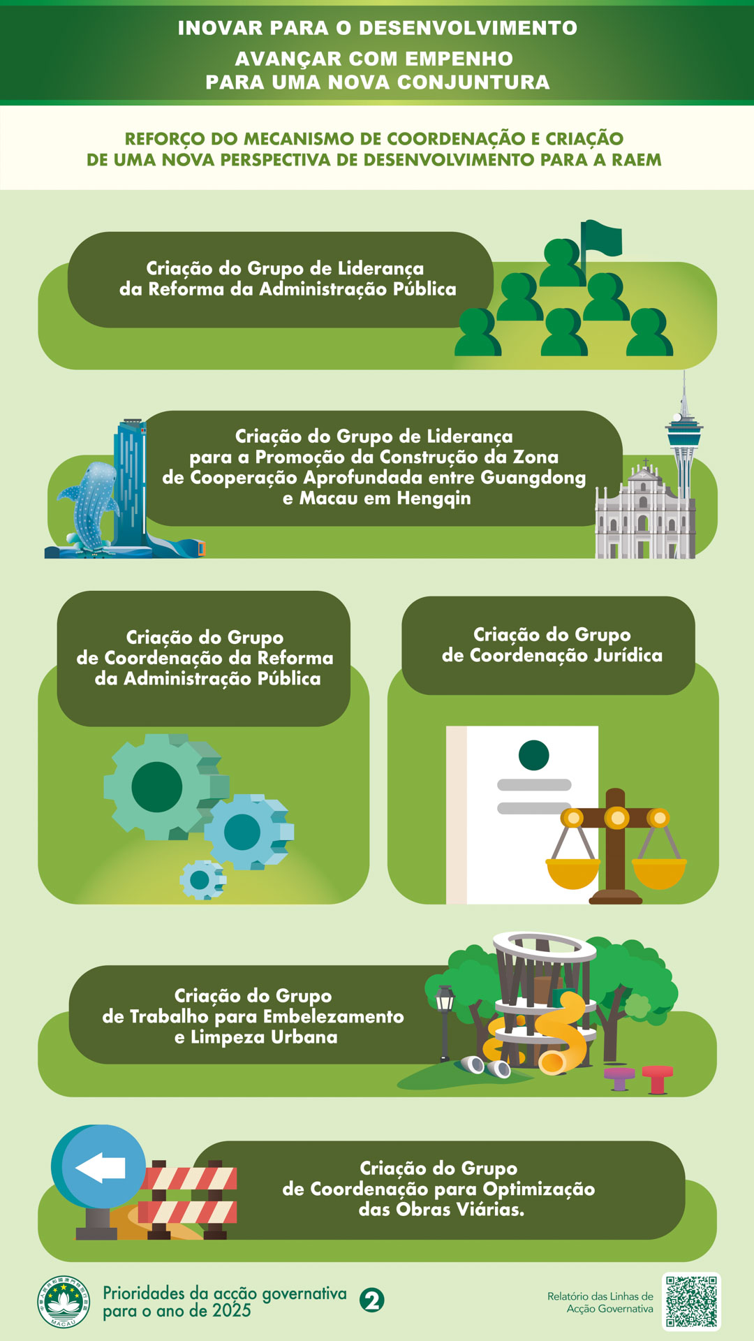 • 1. Reforço do mecanismo de coordenação e criação de uma nova perspectiva de desenvolvimento para a RAEM