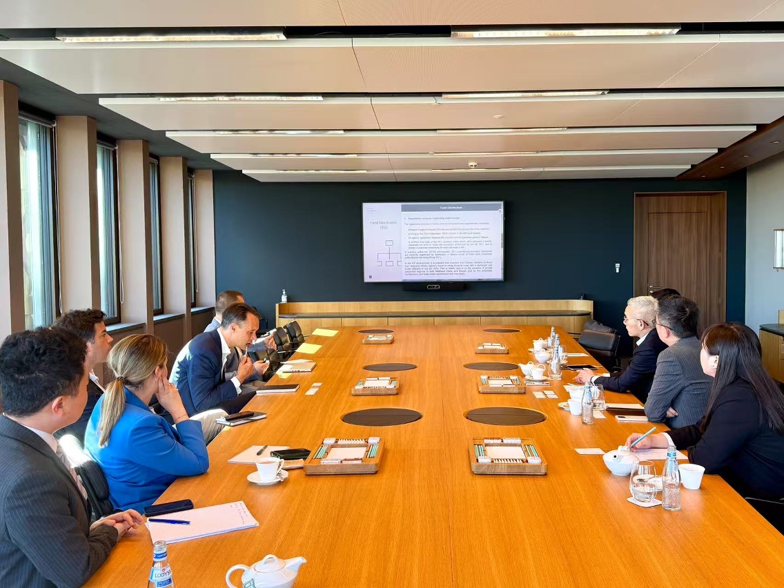Durante a estadia em Luxemburgo, a delegação participou numa palestra de instituições financeiras chinesas locais (nomeadamente Banco da China, Banco Comercial e Industrial da China, Banco Agrícola da China, Banco de Construção da China e Banco de Comunicações da China), auscultando a situação de actividade conjunta dos sectores financeiros dos dois territórios e as propostas sobre o reforço da cooperação financeira entre Luxemburgo e Macau. Durante o encontro com representantes da Association of the Luxembourg Fund Industry (ALFI), Luxembourg for Finance e Luxembourg Stock Exchange (Bolsa de Valores do Luxemburgo), a delegação conheceu e aprendeu de forma aprofundada as experiências de sucesso do mercado de obrigações e dos fundos de investimento locais. Tai Kin Ip indicou que a Central de Depósito de Valores Mobiliários de Macau (CSD) concluiu a interligação directa com a The Central Moneymarkets Unit (CMU) de Hong Kong, e manifestou a esperança de que, no futuro, seja alargada a cooperação internacional com aproveitamento das experiências e forças de Luxemburgo, convidando a parte luxemburguesa a partilhar exemplos de sucesso em obrigações verdes para o sector financeiro de Macau. Por outro lado, ambas as partes também negociaram sobre a cotação de obrigações de Macau na Bolsa de Valores do Luxemburgo e a criação das condições para a consequente transacção, bem como a cooperação na formação de quadros qualificados financeiros, com o objectivo de impulsionar o desenvolvimento do mercado de obrigações de Macau e formar quadros qualificados financeiros.