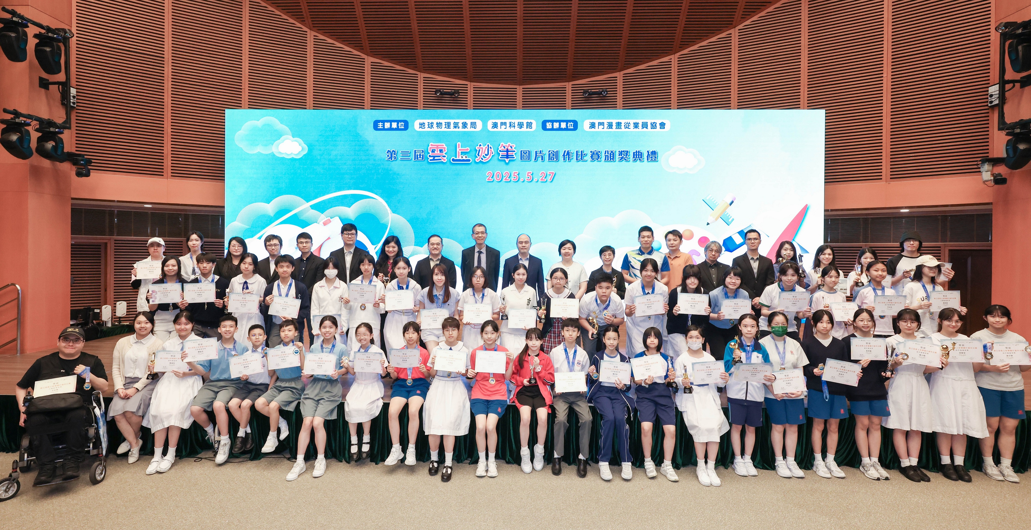 As Cerimónias de Entrega de Prémios e Abertura da Exposição das Obras Premiadas do 3º “Concurso de Desenho em Fotografias de Nuvem” organizado conjuntamente pela Direcção dos Serviços Meteorológicos e Geofísicos (DSMG) e pelo Centro de Ciência de Macau e em colaboração com a “Macau Comickers Association”, tiveram lugar hoje, dia 27, no Centro de Ciência de Macau. A presente edição do concurso foi muito bem recebida, com um total de 810 obras submetidas. As obras premiadas estão em exposição na Galeria de Exposições do Centro de Conferências do Centro de Ciência de Macau, a partir de hoje até 1 de Setembro.