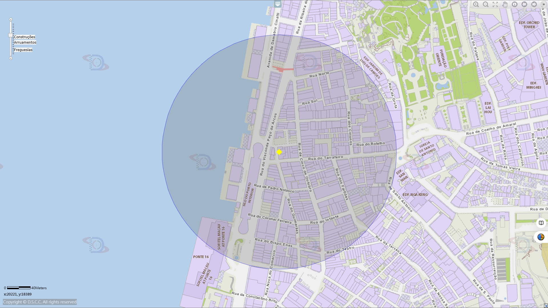 • Áreas da eliminação química de mosquitos perto do Edifício Kei Tat, situado na Rua do Guimarães