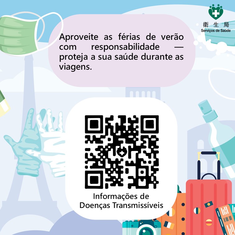 Com a chegada das férias de Verão, muitos residentes planeiam viajar ou visitar as suas famílias. Com o intuito de garantir a segurança da viagem, de permitir aos residentes gozarem as férias com tranquilidade e proteger a sua saúde e dos seus familiares, os Serviços de Saúde alertam os residentes para a prevenção de doenças antes de viajarem, recomendando que, antes da partida, devem consultar a situação epidemiológica das doenças transmissíveis no local de destino, tomar medidas preventivas contra mosquitos e prestar atenção à higiene pessoal e alimentar, a fim de reduzir o risco de infecção de febre de dengue, doenças respiratórias infecciosas e doenças gastrointestinais.
