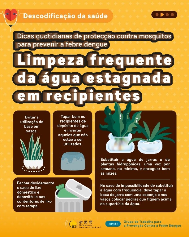 Além de mais, os Serviços de Saúde apelam à população para adoptar bem, as “Três estratégias contra mosquitos”, no sentido de prevenir e controlar em conjunto a febre de dengue e a febre chikungunya: