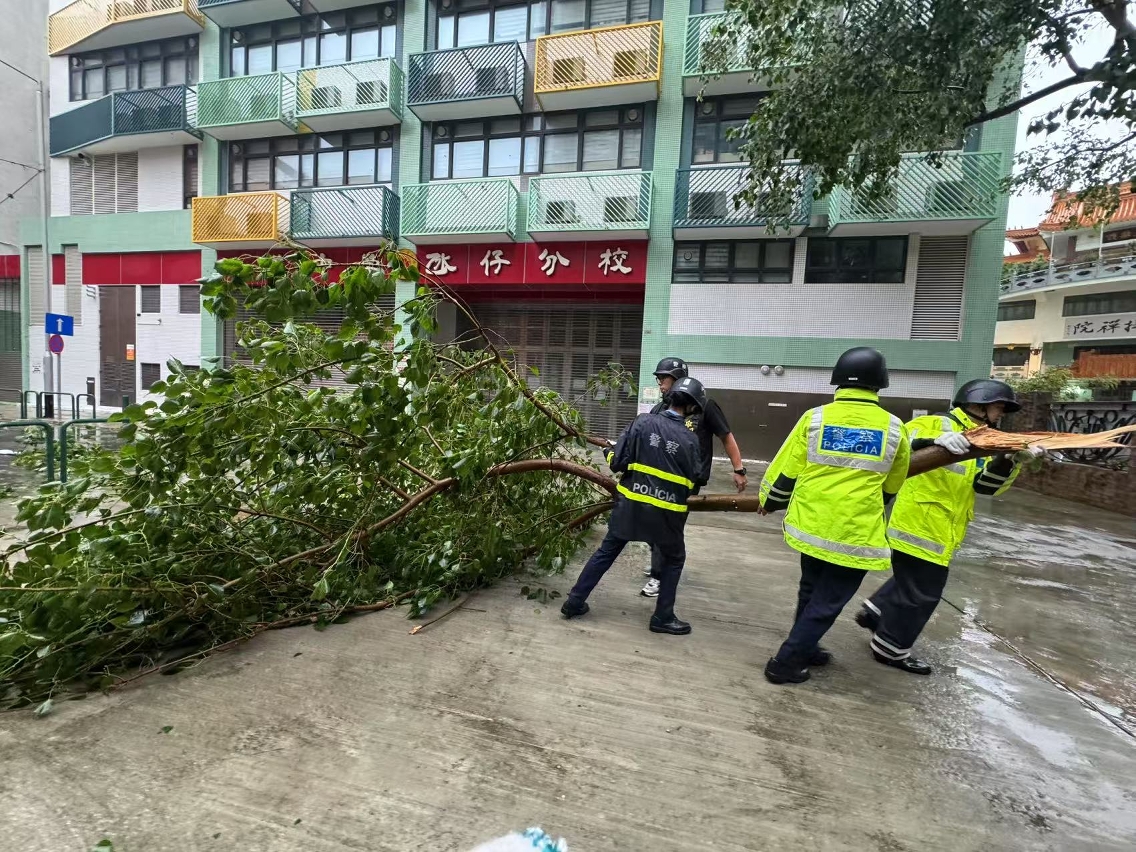 Por volta das 18h30, após avaliar as condições de segurança, as forças e serviços de segurança formaram rapidamente equipas de remoção de obstáculos e de árvores caídas, de forma a assegurar a fluidez da circulação das principais vias rodoviárias de Macau, permitindo que a ordem social volte basicamente à normalidade num curto espaço de tempo e garantindo a segurança das deslocações dos cidadãos e turistas.