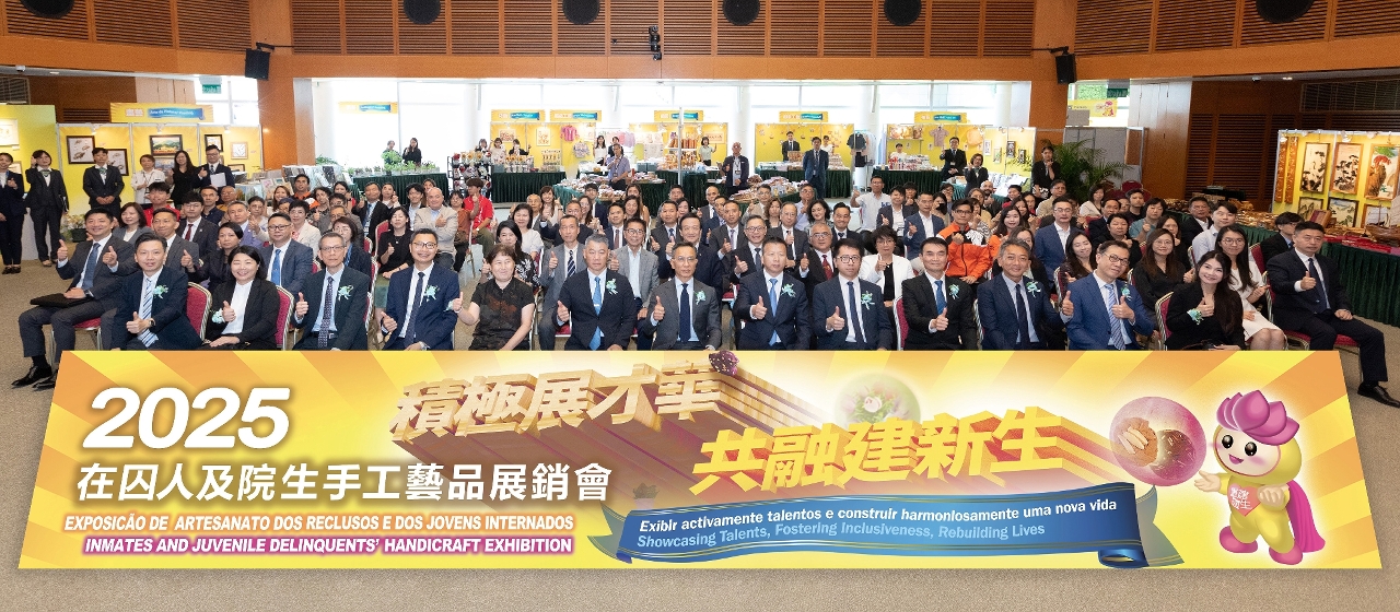 A Exposição de Artesanato dos Reclusos e dos Jovens Internados 2025, organizada conjuntamente pela Direcção dos Serviços Correccionais (DSC) e pelo Centro de Ciência de Macau (CCM), com a colaboração do Instituto para os Assuntos Municipais (IAM), da Direcção dos Serviços de Educação e de Desenvolvimento da Juventude (DSEDJ), e do Instituto de Acção Social (IAS), realizou a sua cerimónia de abertura na manhã do dia 25 de Julho no Salão de Convenções do Centro de Ciência de Macau. O evento decorrerá até 27 do corrente mês. Através da exibição dos resultados do esforço de aprendizagem dos reclusos e jovens internados, a iniciativa visa permitir ao público sentir a determinação dos mesmos em reabilitar-se activamente, apoiando e aceitando, assim, a sua reintegração social.