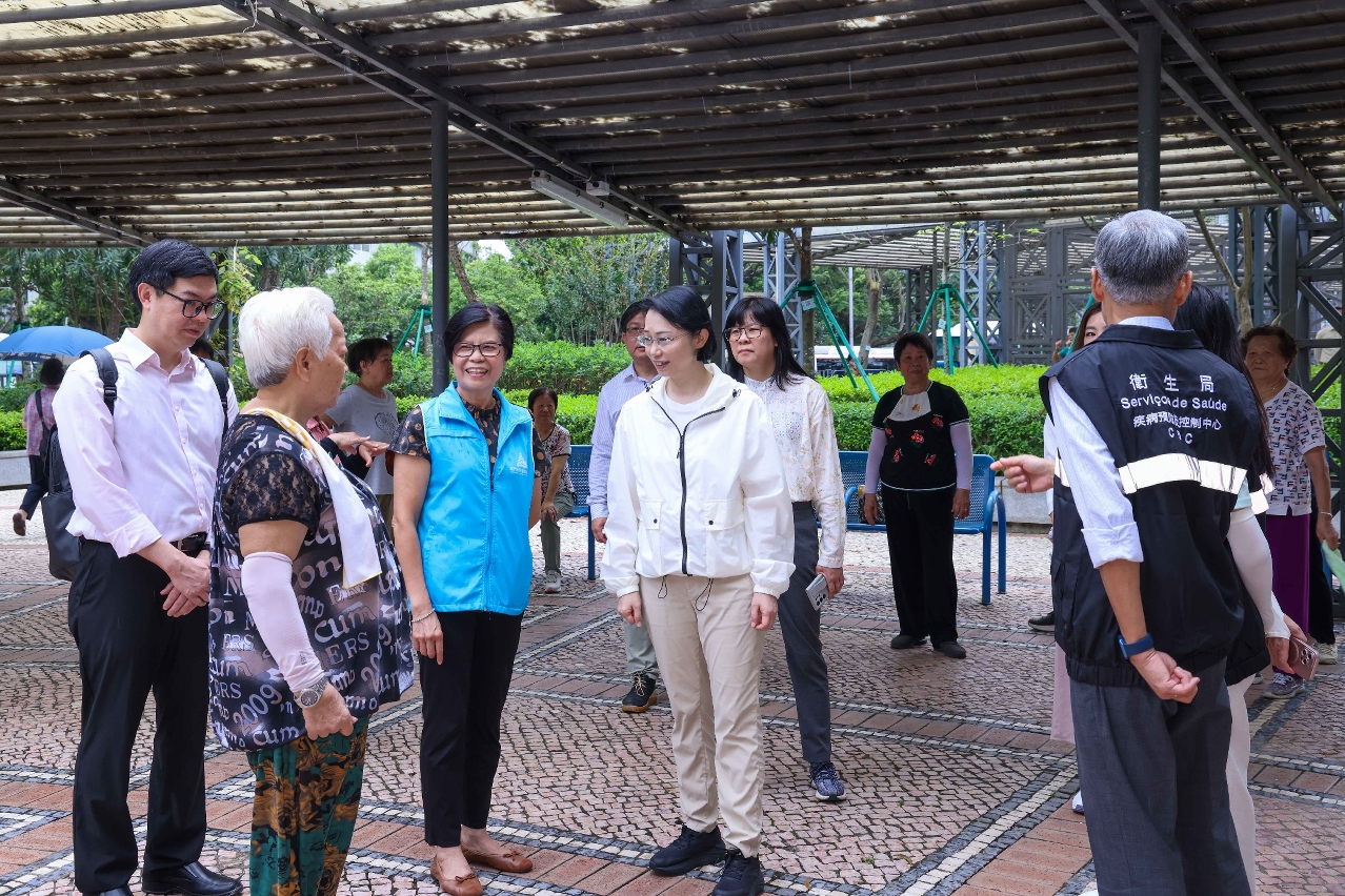 A par disso, A Secretária para os Assuntos Sociais e Cultura, Dra. O Lam, sua comitiva e os representantes da União Geral das Associações dos Moradores de Macau inspeccionaram in loco, os jardins situados nas zonas residenciais da península de Macau, tais como o Jardim da Areia Preta e as ruas circundantes, os pontos negros, incluindo a área do Pátio do Espinho, as casas desocupadas no Pátio do Mungo e o Edifício Mau Tan. Durante as visitas, ouviram relatórios detalhados dos responsáveis relevantes sobre os trabalhos de eliminação de mosquitos e de prevenção e controlo, bem como trocaram opiniões com os moradores da comunidade para melhor compreender a situação. A Secretária, Dra. O Lam reconheceu os esforços envidados por Macau na prevenção e controlo da propagação da febre Chikungunya, sublinhando a necessidade de manter a vigilância e não se pode negligenciar a situação. Durante as inspeções in loco, a Secretária procedeu ao planeamento dos trabalhos de prevenção e controlo, como o reforço da eliminação de mosquitos, no sentido de reduzir o risco de propagação da doença e, desta forma, envidar todos os esforços para garantir a segurança e a saúde da população.