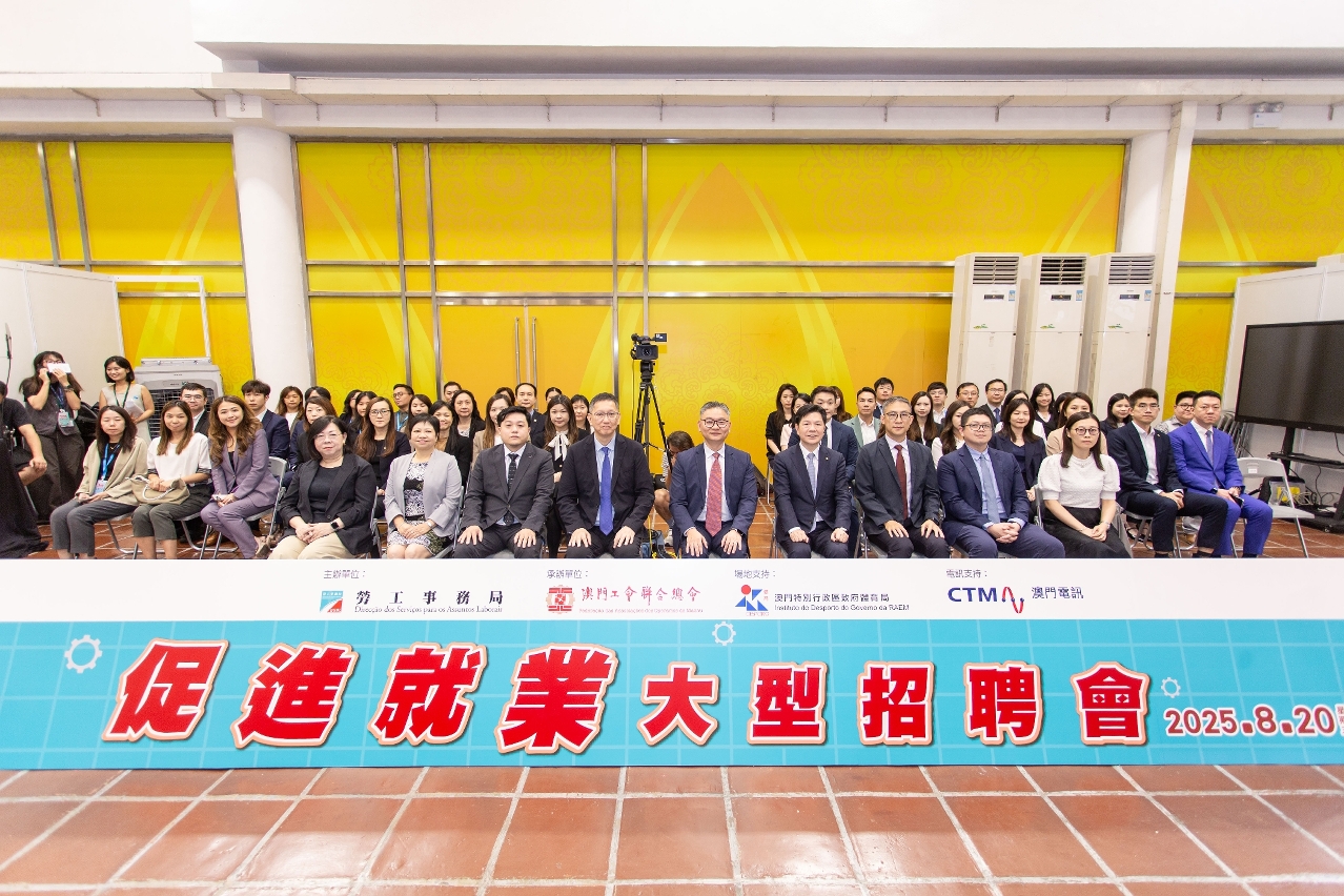 A fim de promover eficientemente a integração dos candidatos a emprego de todos os estratos sociais no mercado de trabalho, bem como para apoiar a mobilidade ascendente da carreira dos residentes, a Sessão de recrutamento de grande envergadura para a promoção de emprego, organizada pela Direcção dos Serviços para os Assuntos Laborais (DSAL), em colaboração com a Federação das Associações dos Operários de Macau (FAOM), teve a cerimónia de abertura no presente dia (20 de Agosto) no Fórum de Macau, seguindo do arranque de três dias consecutivos de actividades, pelo qual o primeiro dia de recrutamento contou com a entrada de1,279 visitantes.