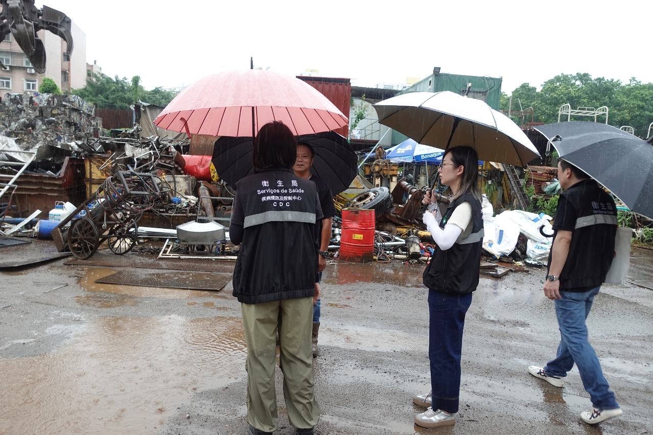 Em resposta às doenças transmitidas por mosquitos, os Grupos de trabalho de saúde têm procedido, mensalmente, a inspecções aos estabelecimentos de alto risco. A partir do mês de Junho, a colaboração interdepartamental foi reforçada. Até ao momento, os Serviços de Saúde, em colaboração com o Instituto para os Assuntos Municipais, o Gabinete de Comunicação Social, a Direcção dos Serviços de Solos e Construção Urbana, a Direcção dos Serviços de Protecção Ambiental, o Corpo de Polícia de Segurança Pública, a Direcção dos Serviços de Assuntos Marítimos e de Água, a Direcção dos Serviços de Turismo, a Direcção dos Serviços de Educação e de Desenvolvimento da Juventude, o Instituto de Acção Social, e outros serviços públicos, realizaram mais de 230 inspecções conjuntas interdepartamentais, nomeadamente em estaleiros de obras, parques, postos fronteiriços, pontes-cais, hotéis, escolas, lares de idosos, ruas e áreas comuns dos edifícios, entre outros locais. Caso sejam detectadas áreas acumuladas de água e fontes de proliferação, durante as inspecções, será procedida à sua eliminação imediata. Caso tal não seja possível, os proprietários em causa serão recomendados a tratá-la de imediato, ou estes casos serão encaminhados para os serviços de supervisão para que o tratamento seja efectuado com a maior brevidade possível. Subsequentemente, serão realizadas novamente inspecções, de modo a assegurar um acompanhamento contínuo, com o intuito de consolidar uma rede de prevenção e controlo da “dupla febre” nos bairros comunitários.